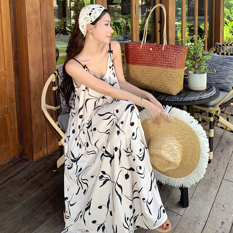 清冷宽松吊带连衣裙女夏季小个子度假碎花长裙气质显瘦沙滩