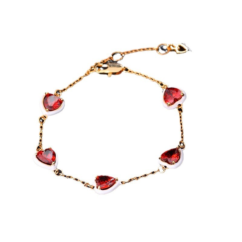 《高版本不掉色18k金厚度0.05+电泳+抛数++4》白色珐琅红桃心手链