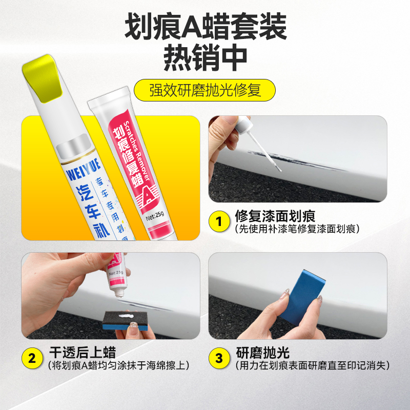 琥珀金(补漆笔+划痕蜡+抛光蜡) 赠砂纸+海绵擦+胶带+清洁棉
