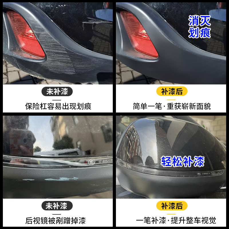 汽车硬塑料件补漆笔保险杠轮眉后视反光镜磨砂黑色刮划痕破损修复
