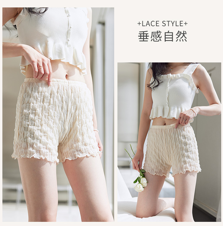 蕾丝安全裤女防走光夏天薄冰丝居家睡裤短裤宽松高腰高弹力打底裤
