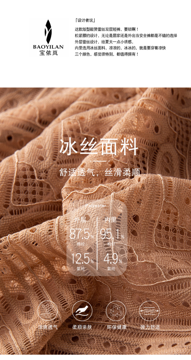 蕾丝安全裤女防走光夏季薄款冰丝双层保险库宽松短裤安全裤可外穿
