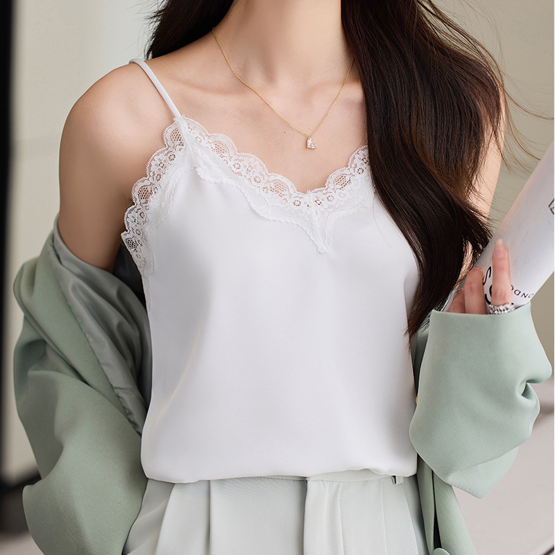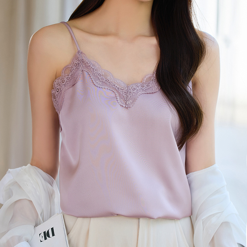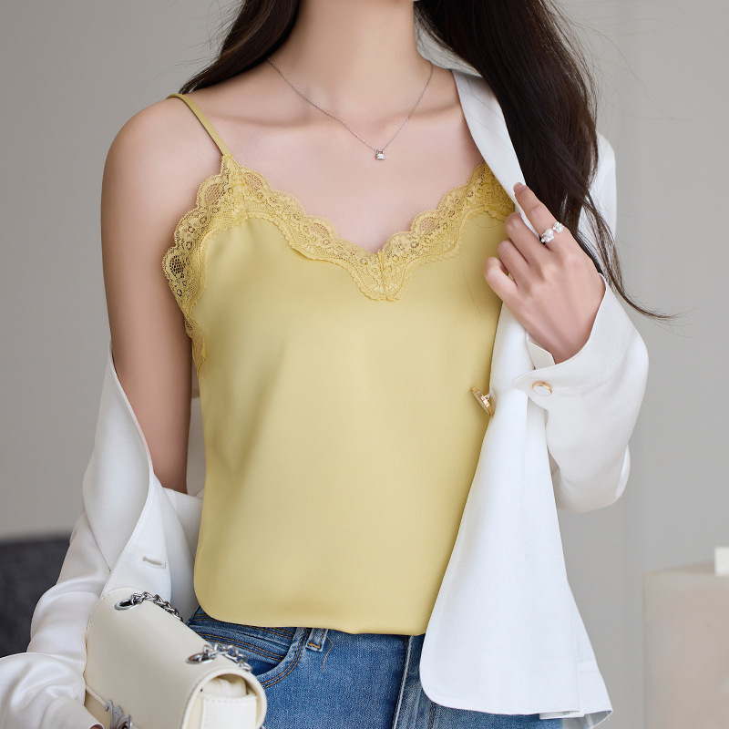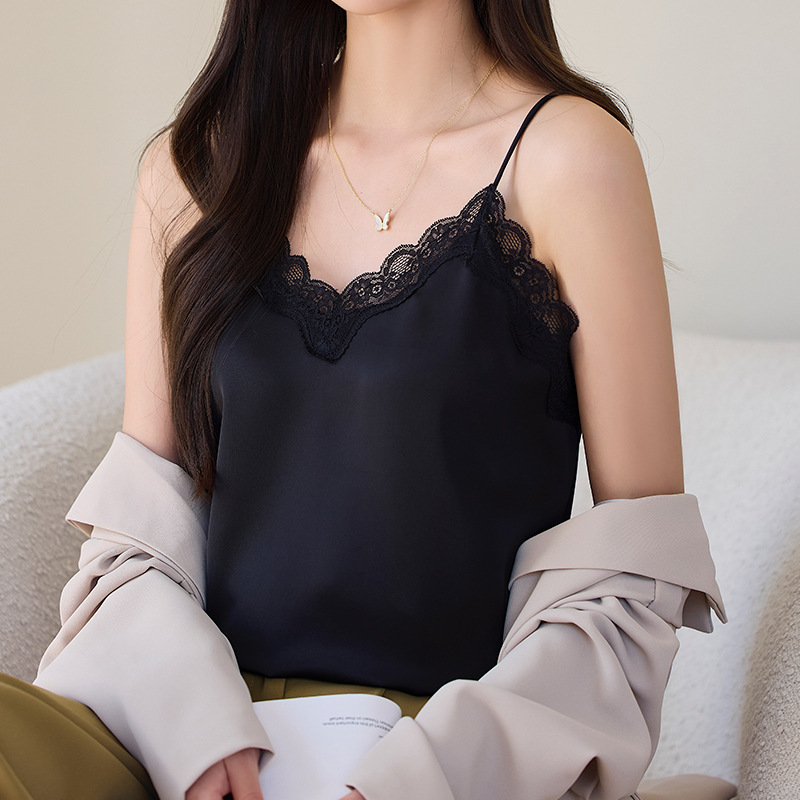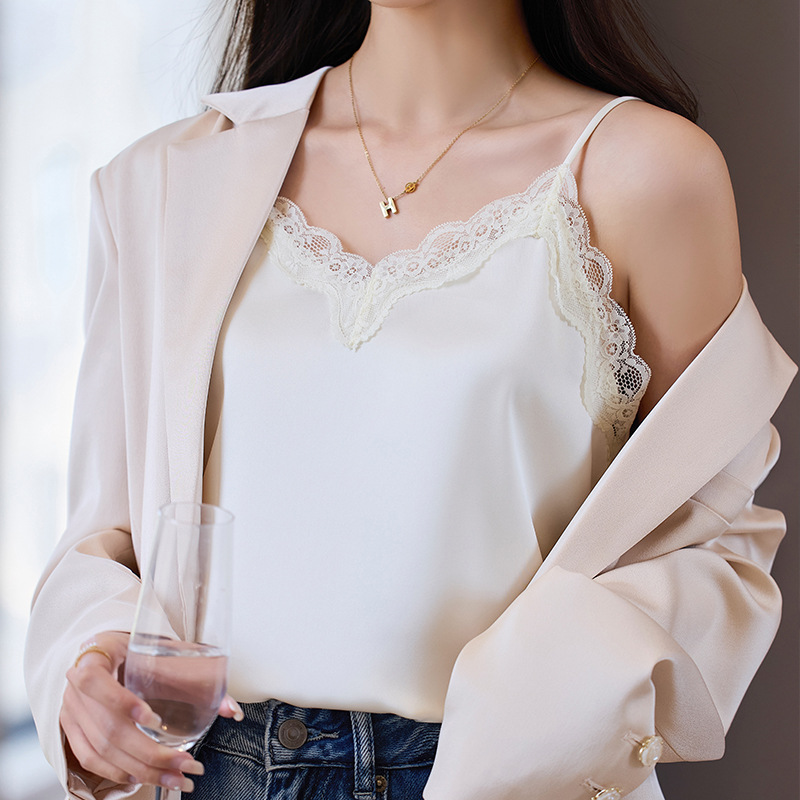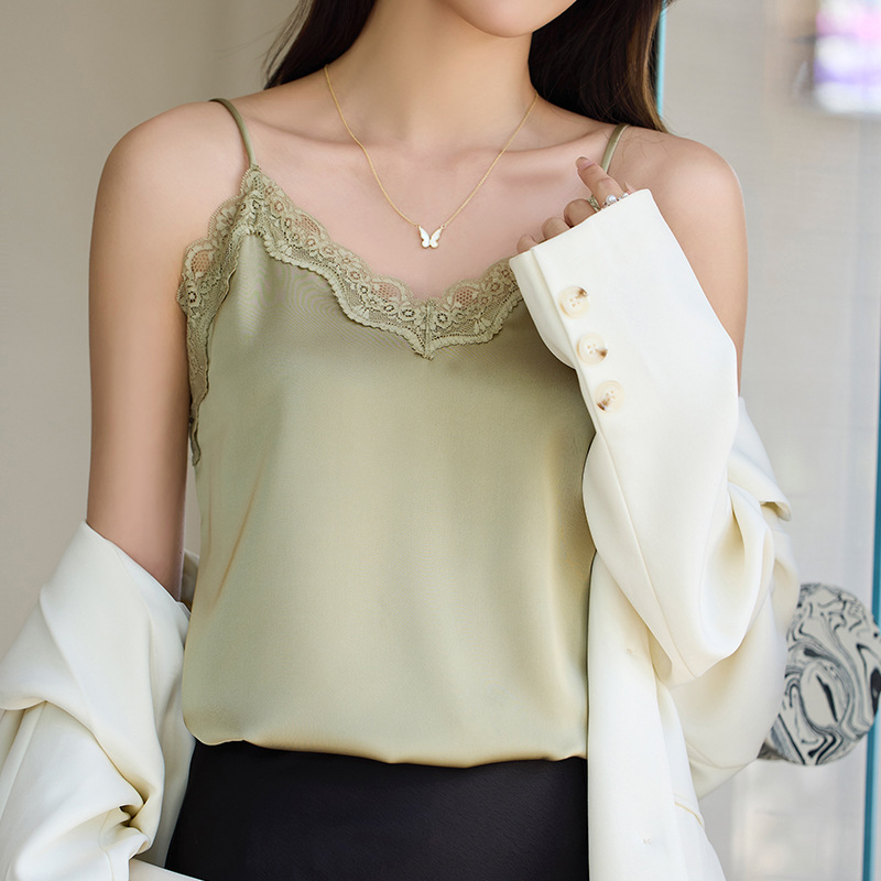 蕾丝打底吊带小背心女士夏季西装内搭冰丝仿真丝醋酸缎面外穿上衣