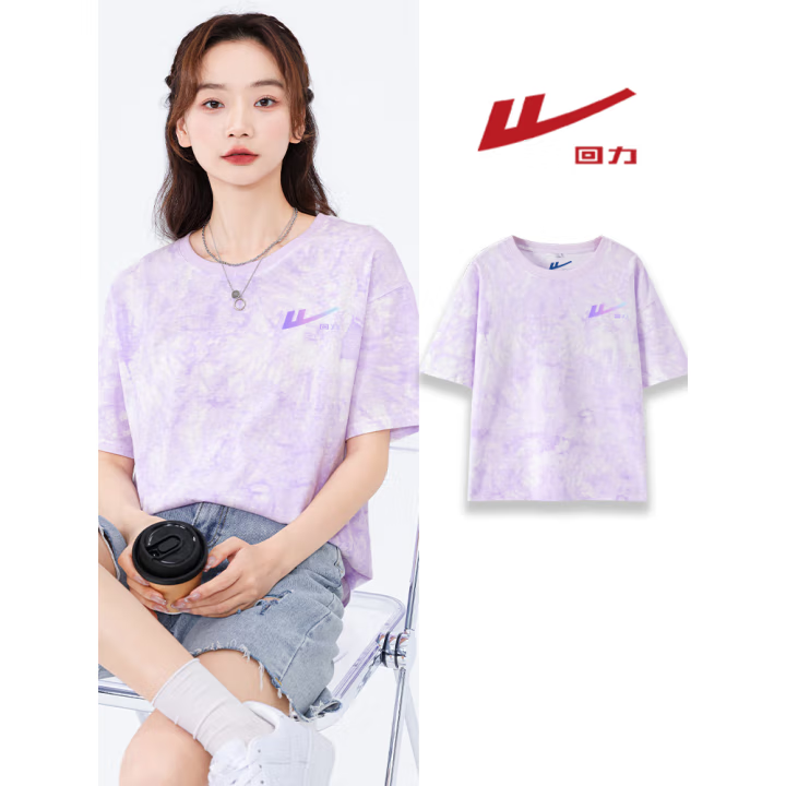 回力紫色扎染纯棉短袖t恤女2025夏季多巴胺时尚宽松休闲