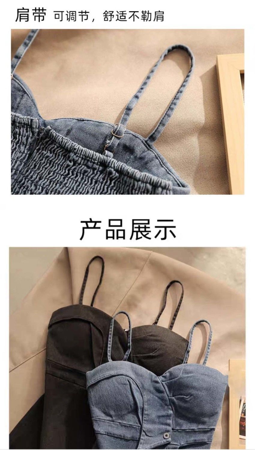 不规则辣妹欲风牛仔抺胸吊带背心女夏外穿性感显瘦裹胸短款上衣