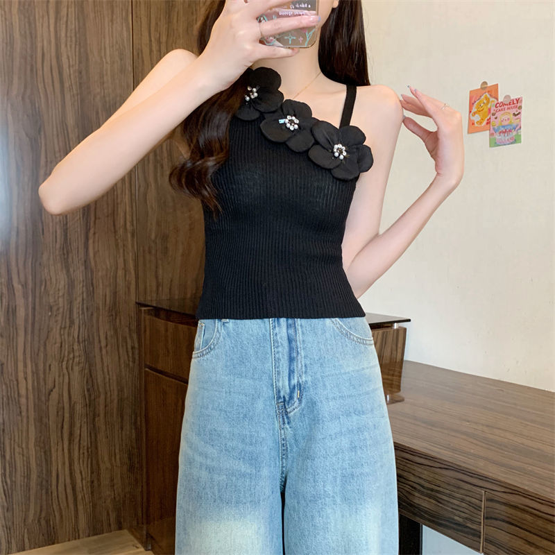 设计感小众斜肩露肩针织吊带背心女夏季内搭打底短款无袖上衣外穿