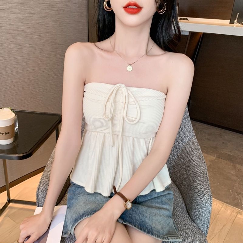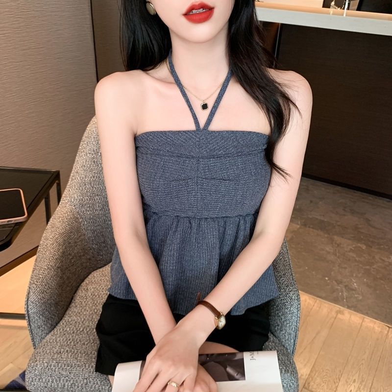 挂脖小吊带背心女夏季色气质抹胸收腰裙摆新款短款露肩设计上衣