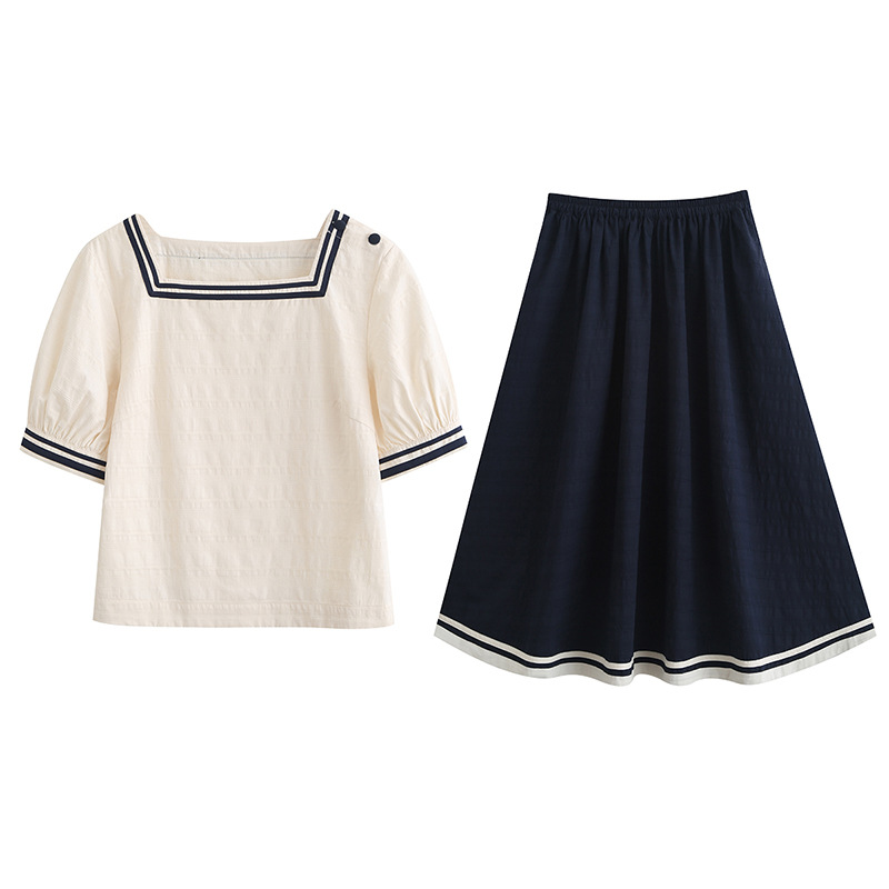 夏日海军风提花肌理感撞色方领短袖衬衫夏季