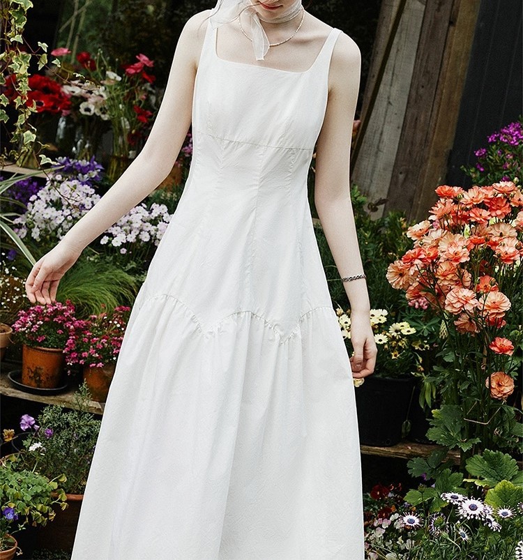 法式白色吊带连衣裙女夏季新款高级感气质长裙