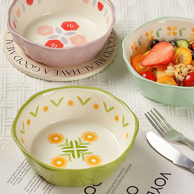 高颜值花边空气炸锅碗水果沙拉碗陶瓷烤碗蒸蛋碗家用餐具个人专用
