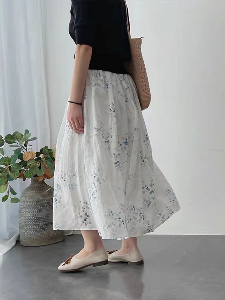 法式复古白色碎花半身裙女小个子夏高腰a字中长款半裙夏季小清新