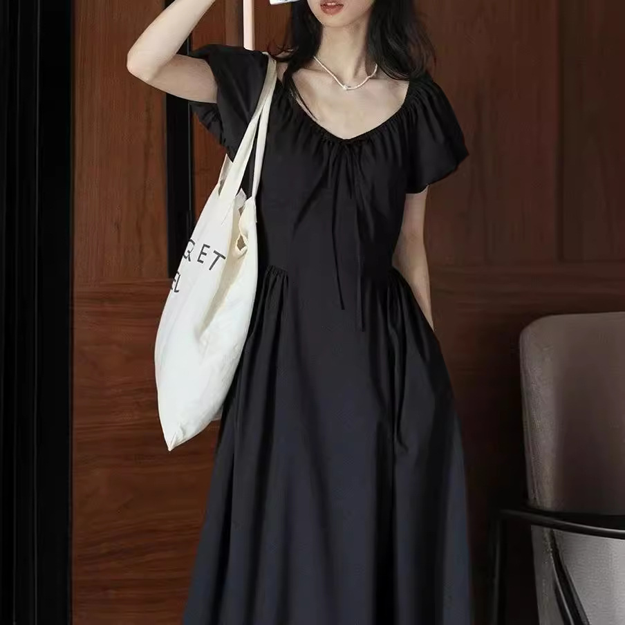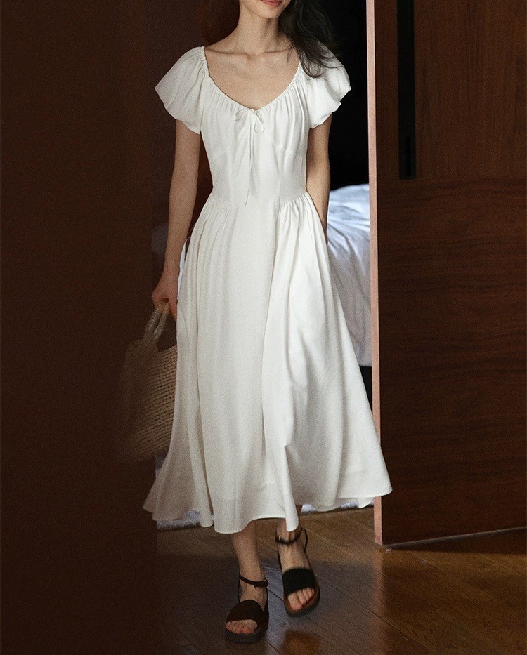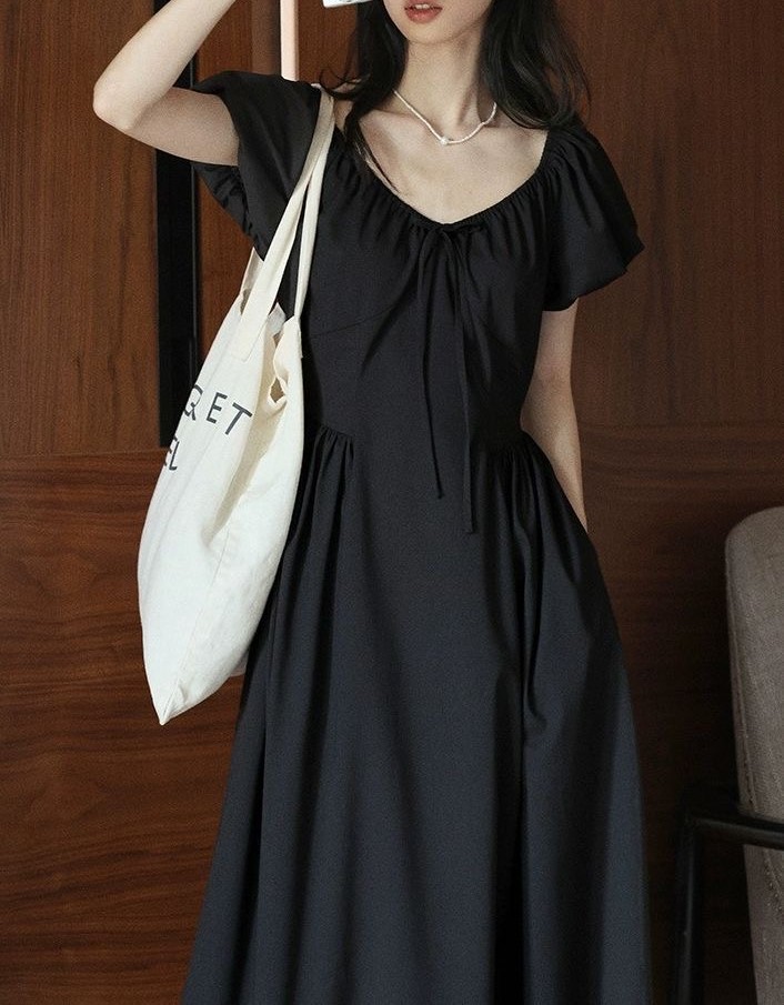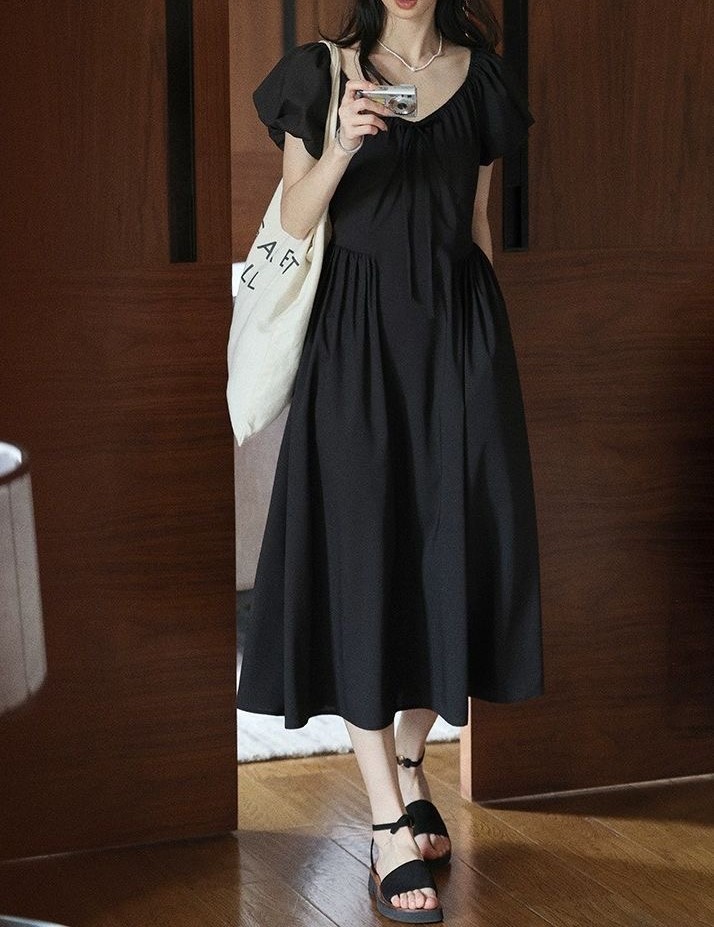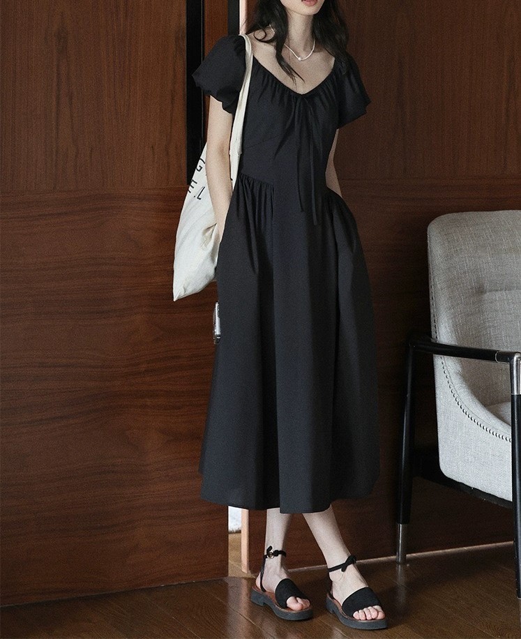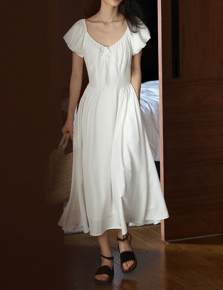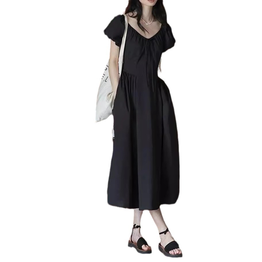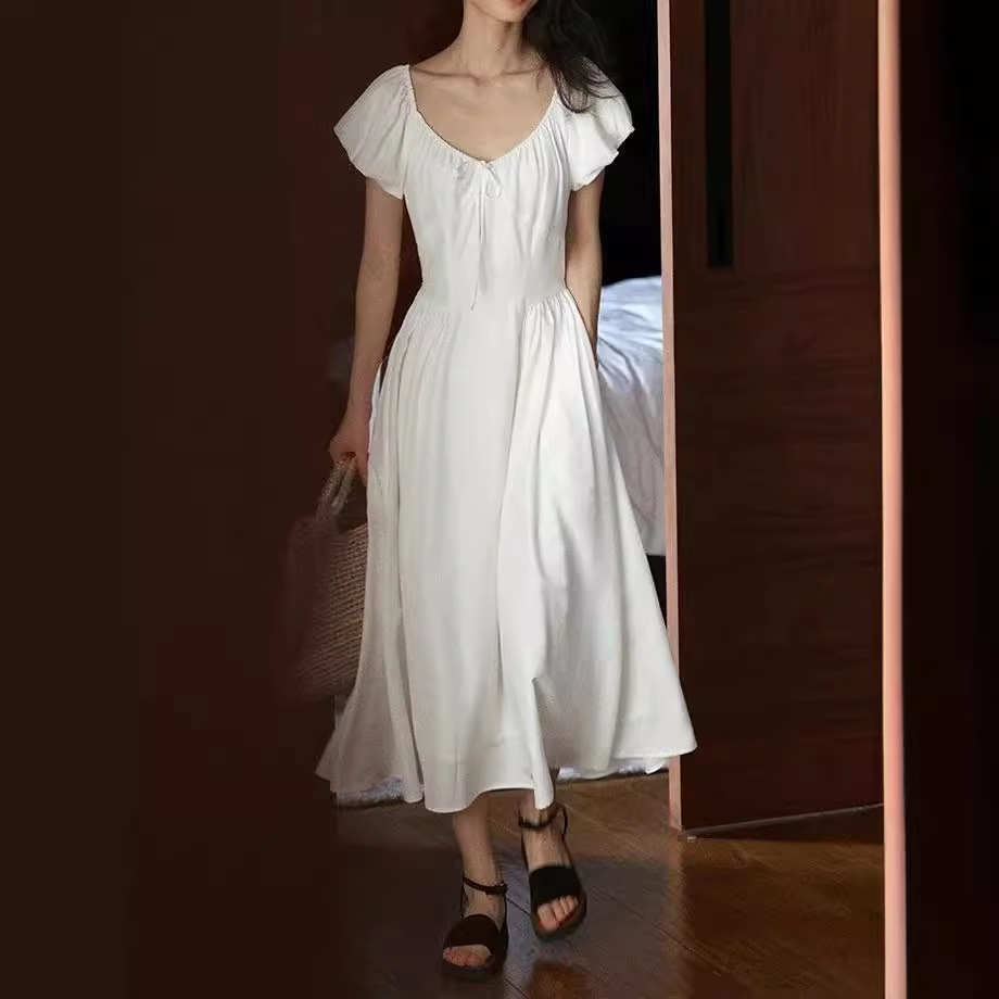 逛画廊的女孩抗皱法式泡泡袖v领连衣裙显瘦仙女裙子夏新款