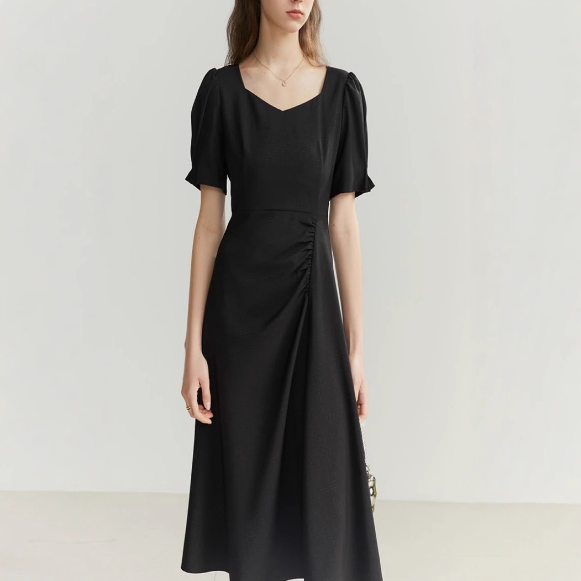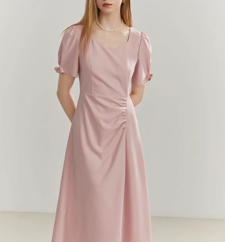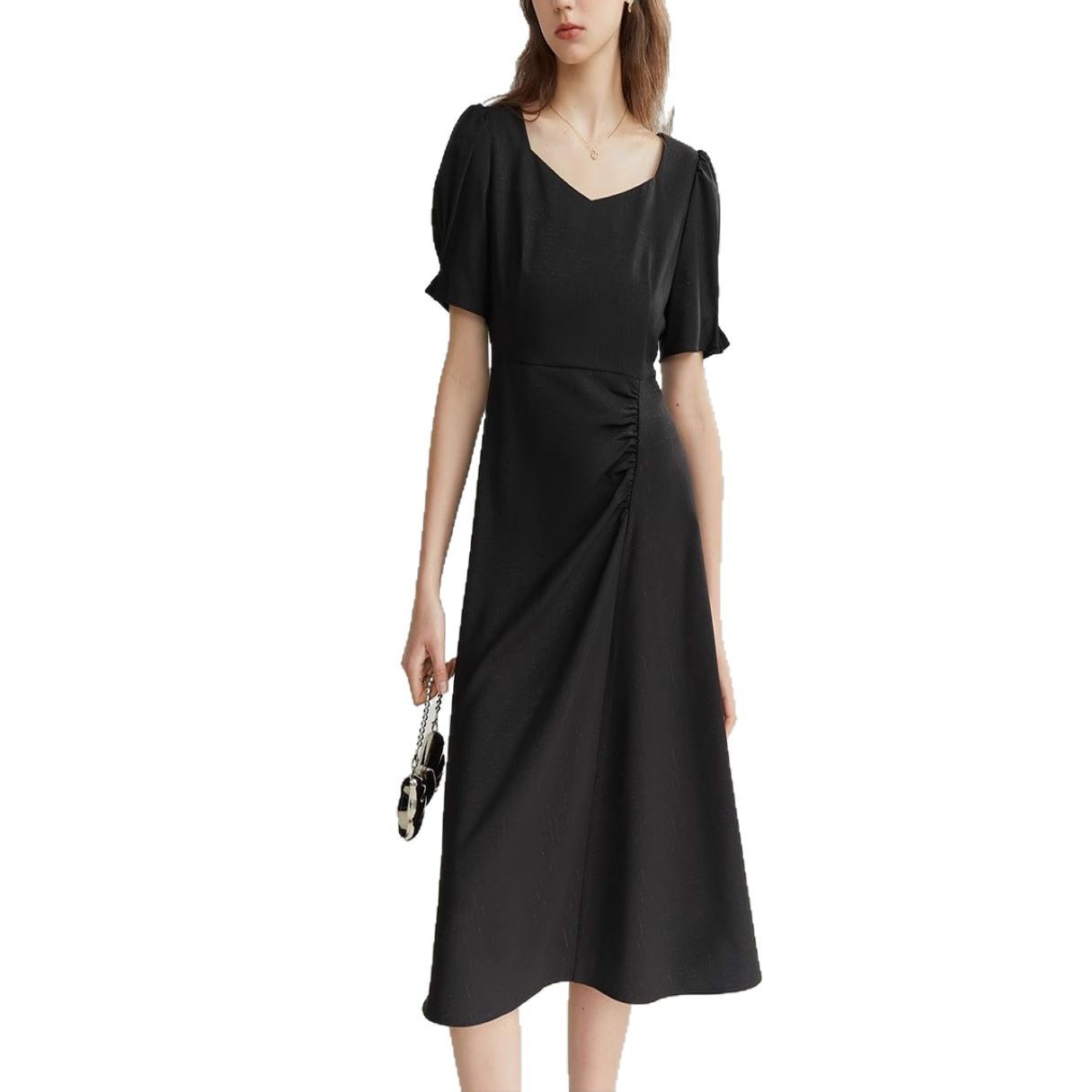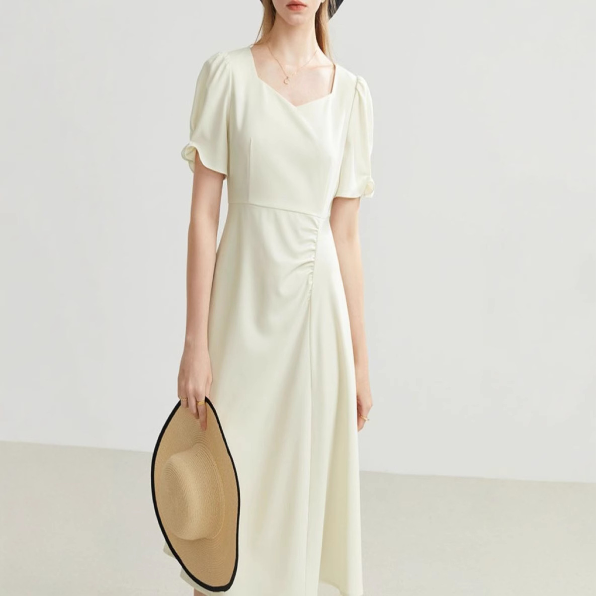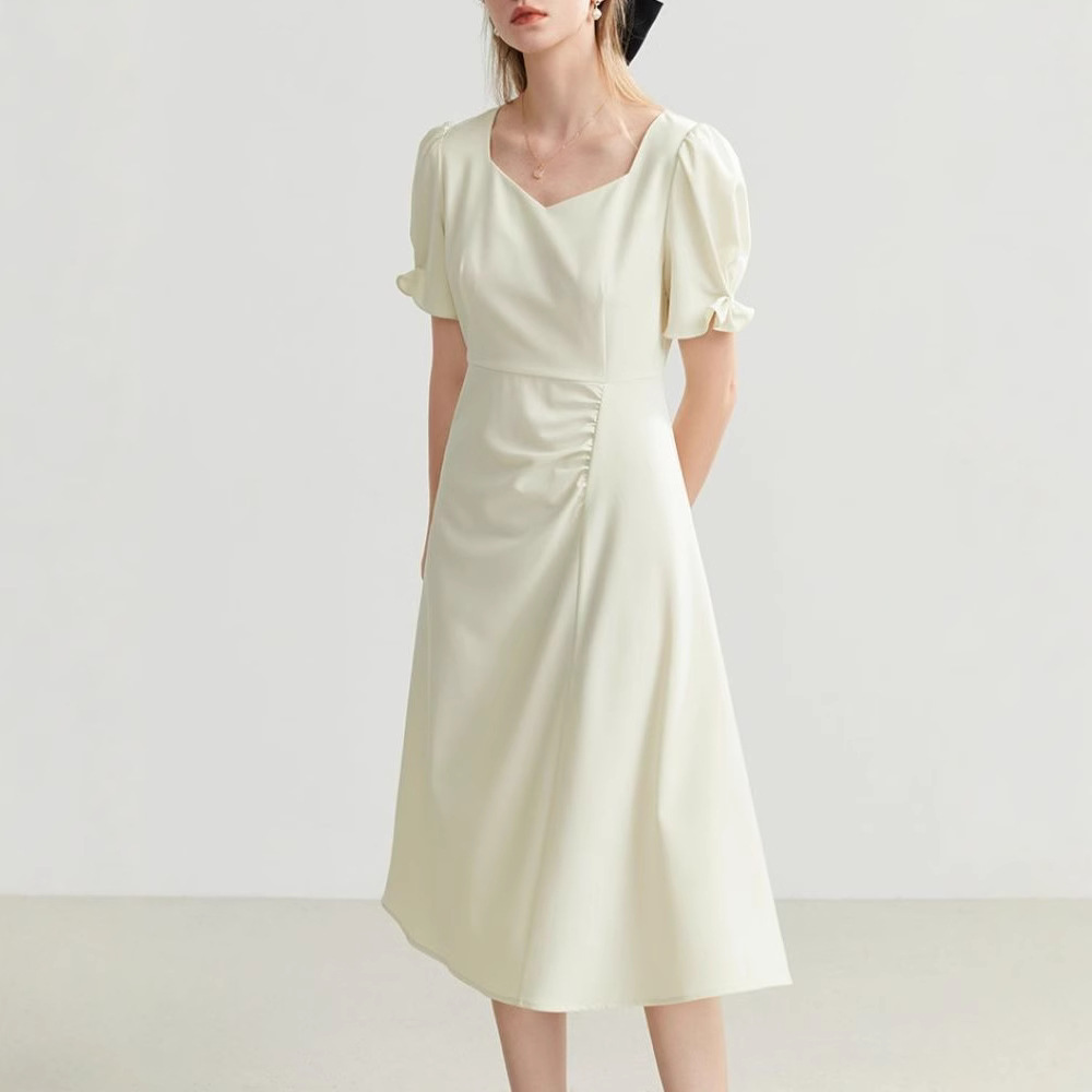 温柔风气质收腰连衣裙女夏季新款泡泡袖修身鱼尾裙子