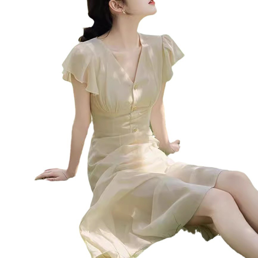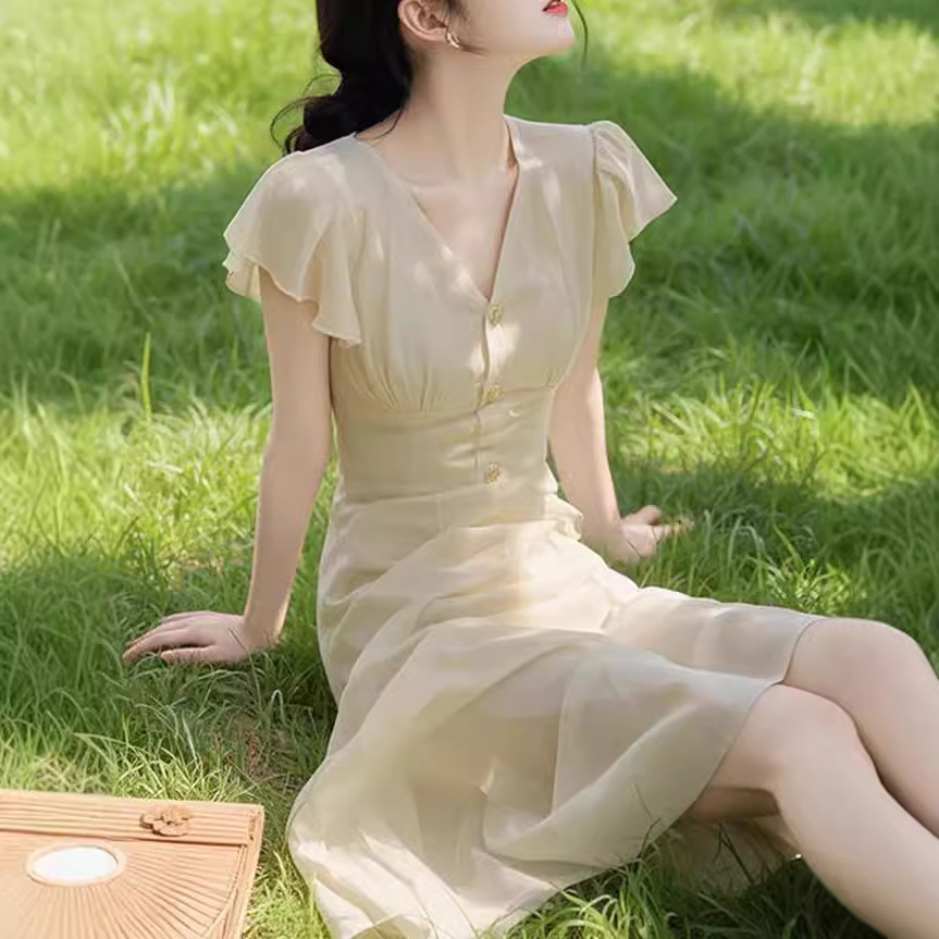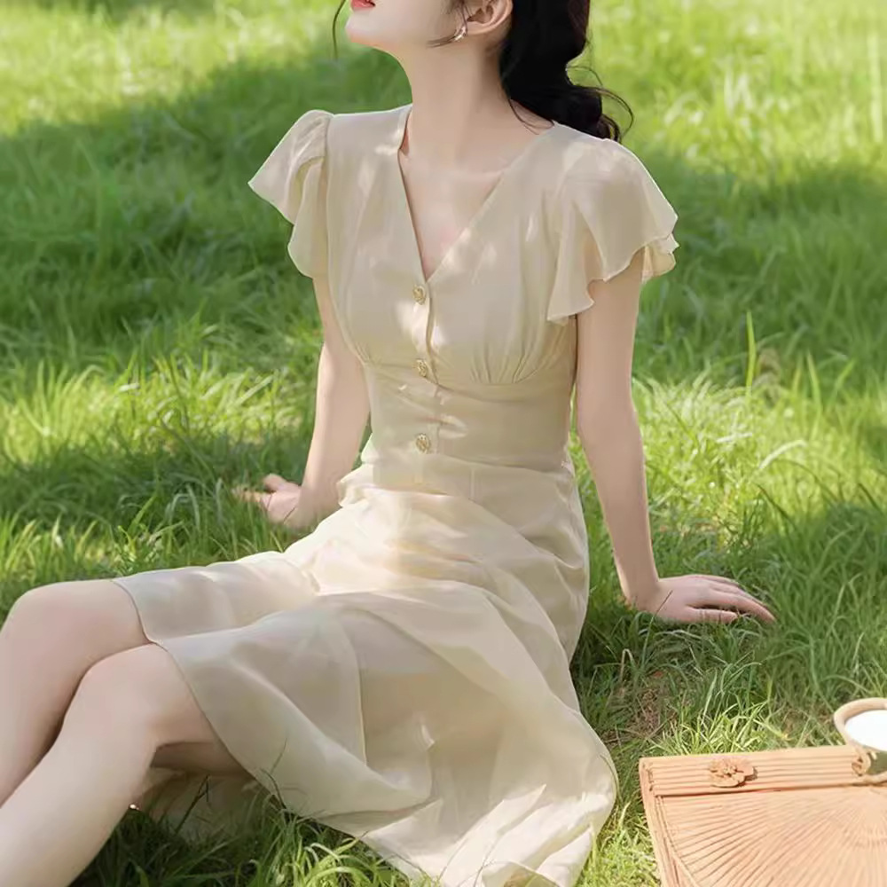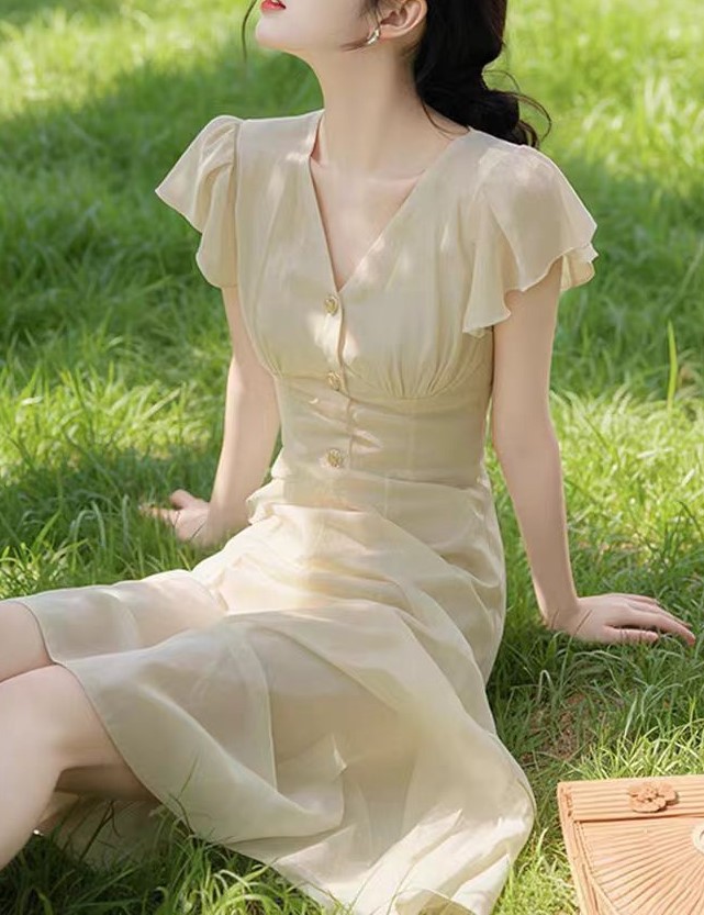 小众设计法式高端精致超好看仙气飘飘收腰连衣裙子女夏季高级质感