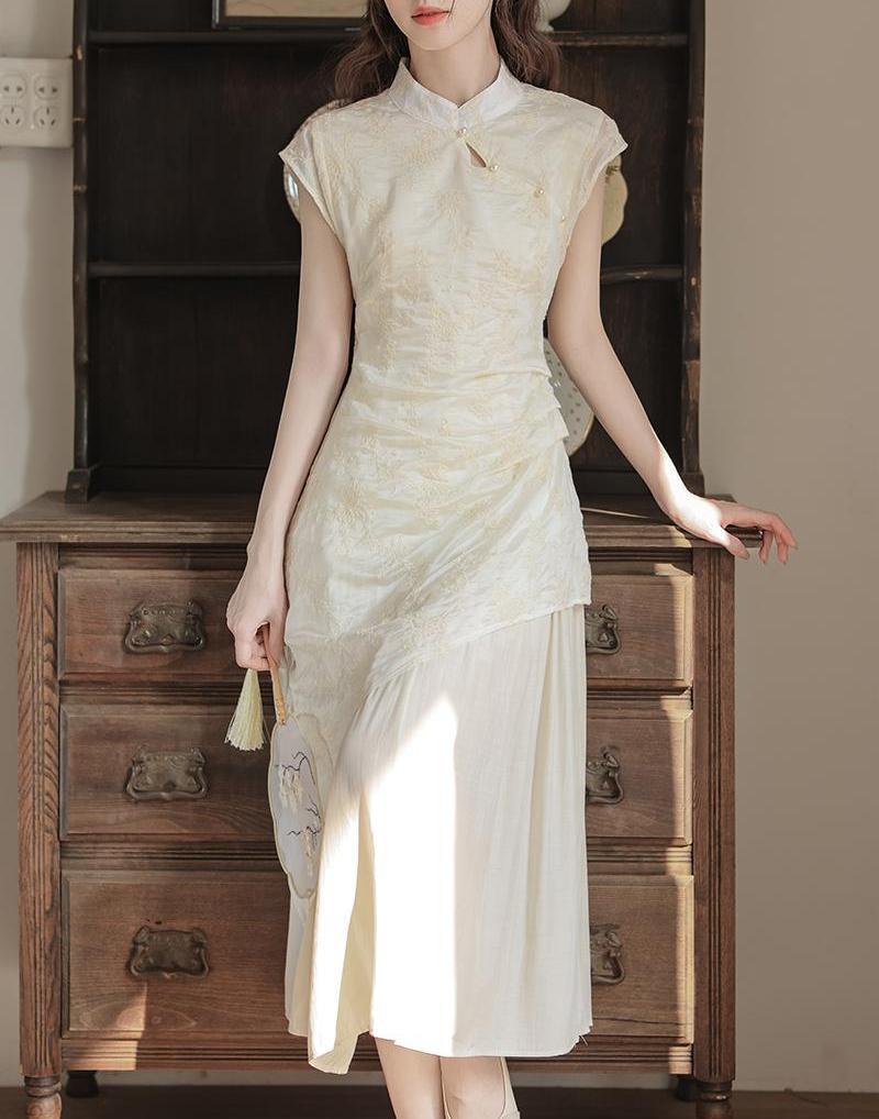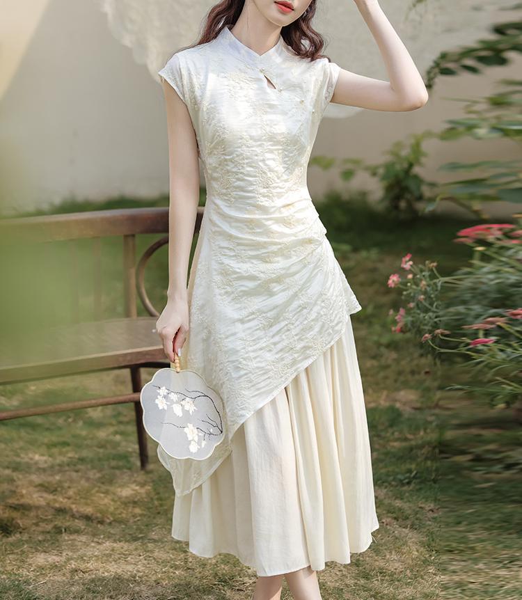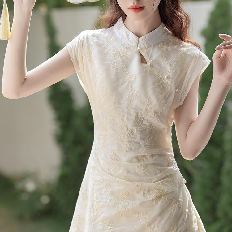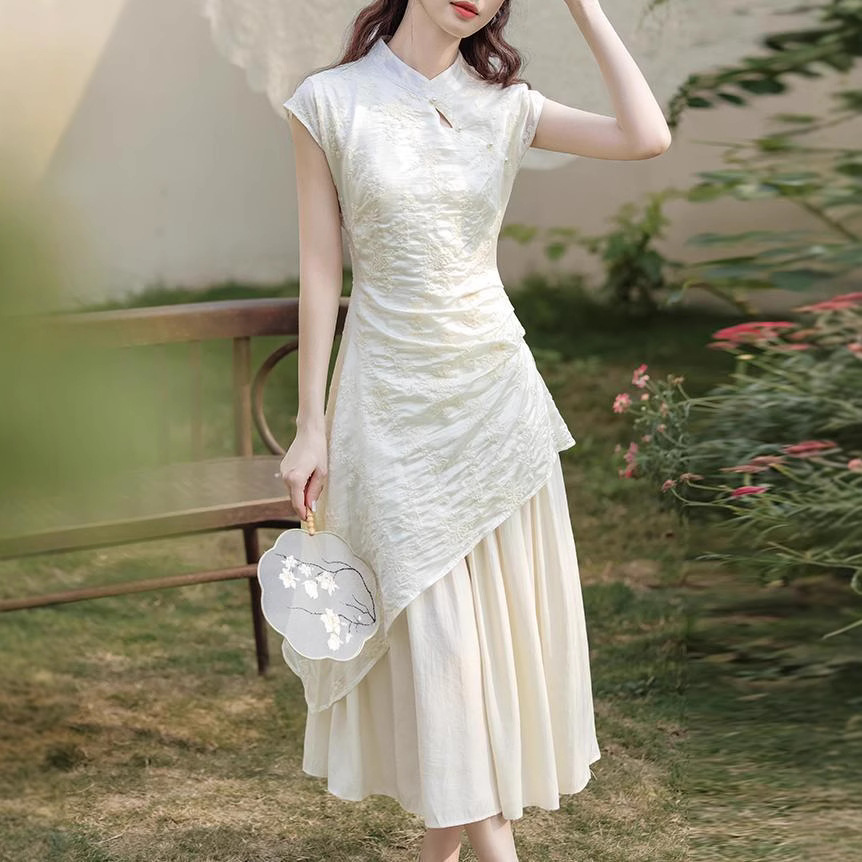 上身绝美~米色气质连衣裙女夏新款年轻款绝美新中式改良旗袍国风