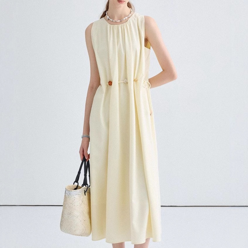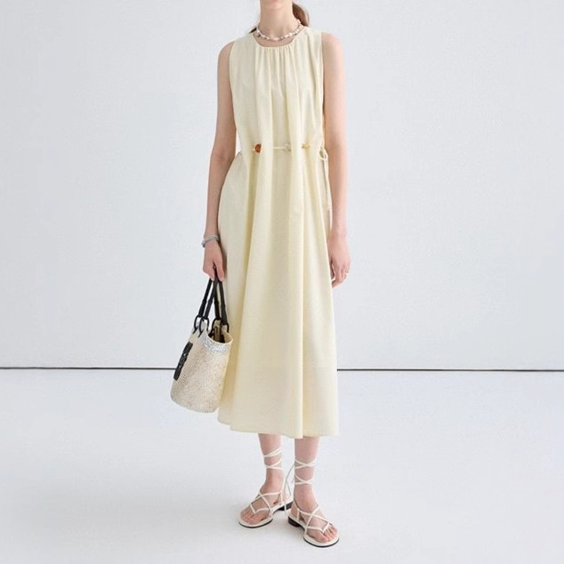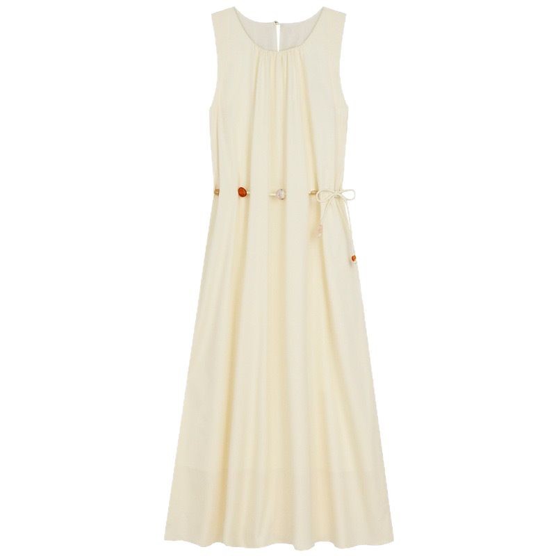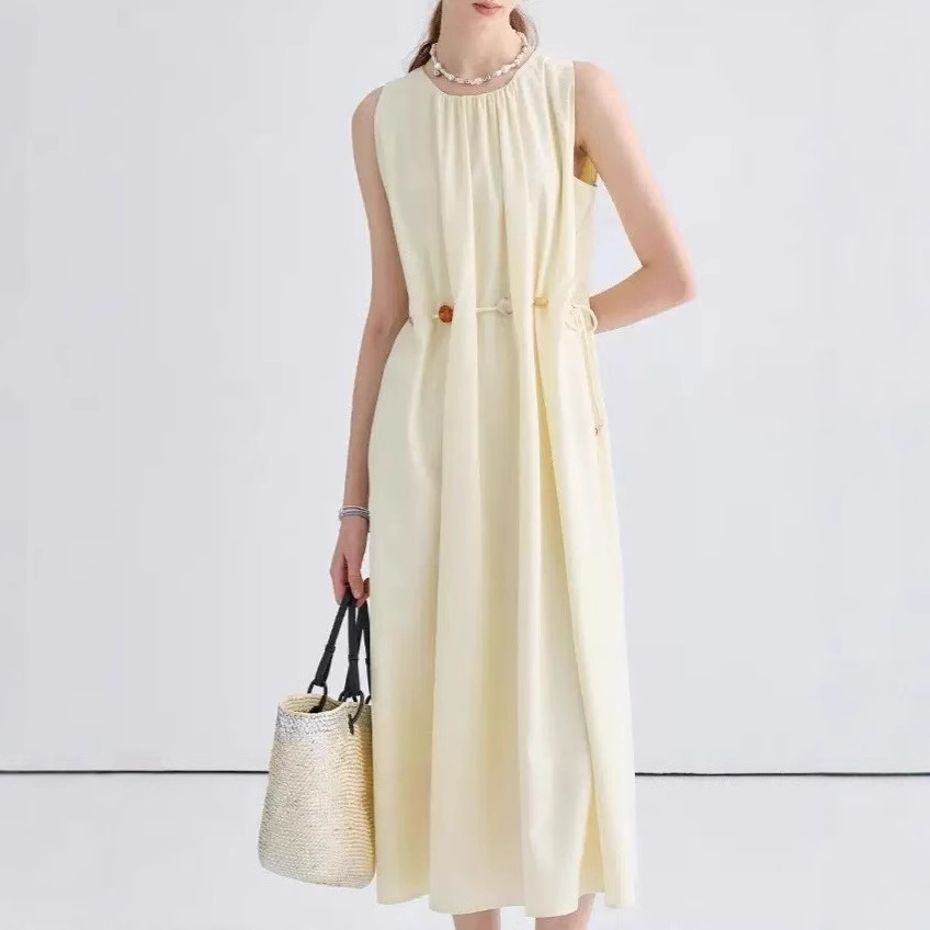 连衣裙女2025年夏季新款腰绳设计高级质感气质圆领显瘦背心裙
