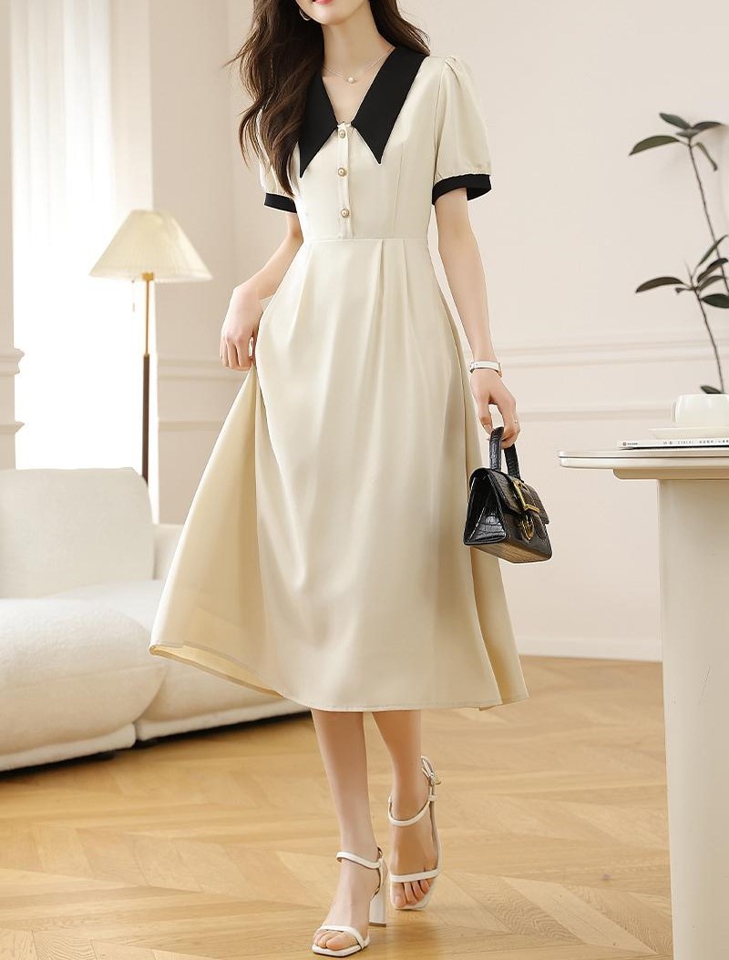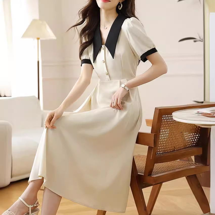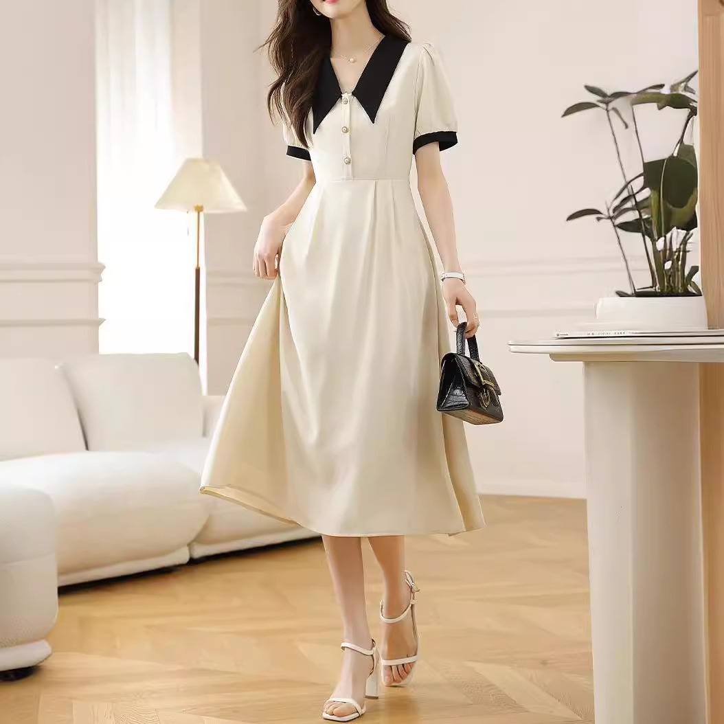 新款女夏季高级感法式气质连衣裙教资面试服装长裙设计小众裙子