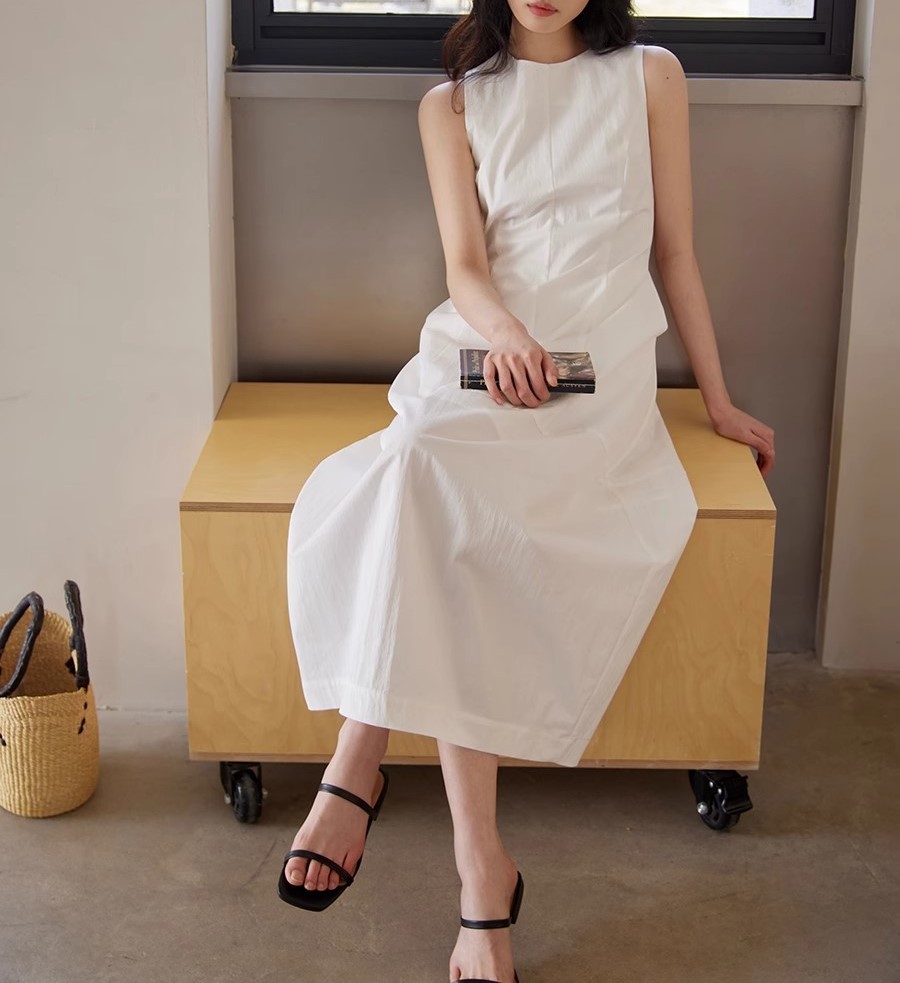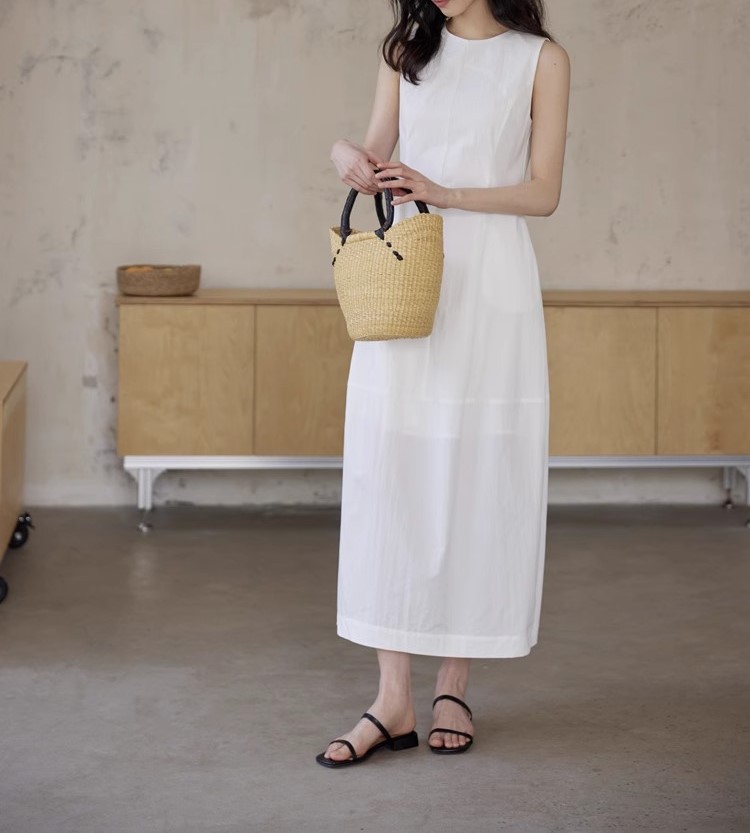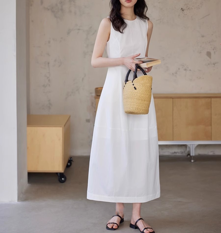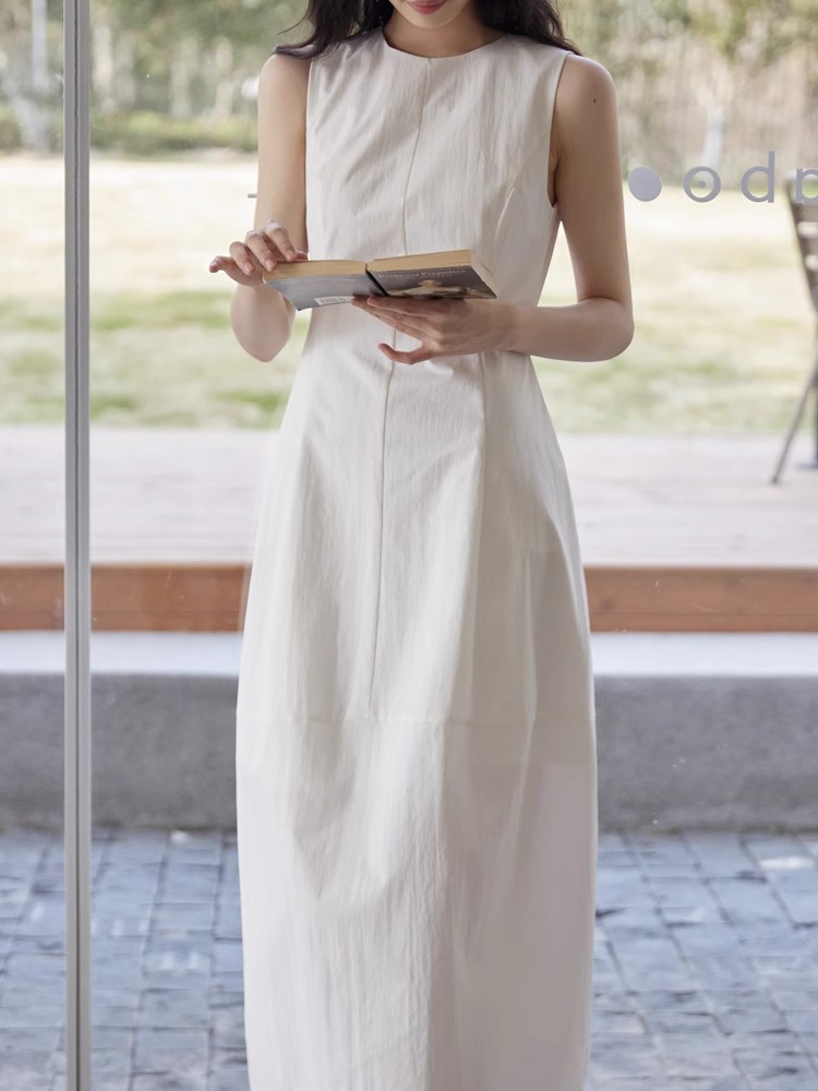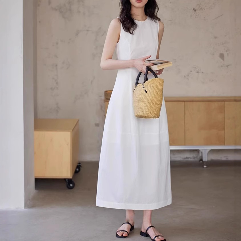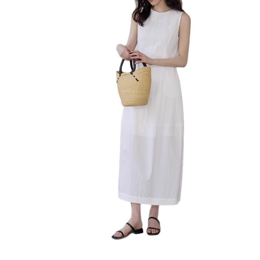 气质小黑裙~法式无袖黑色连衣裙女夏收腰纯色显瘦背心裙花苞裙