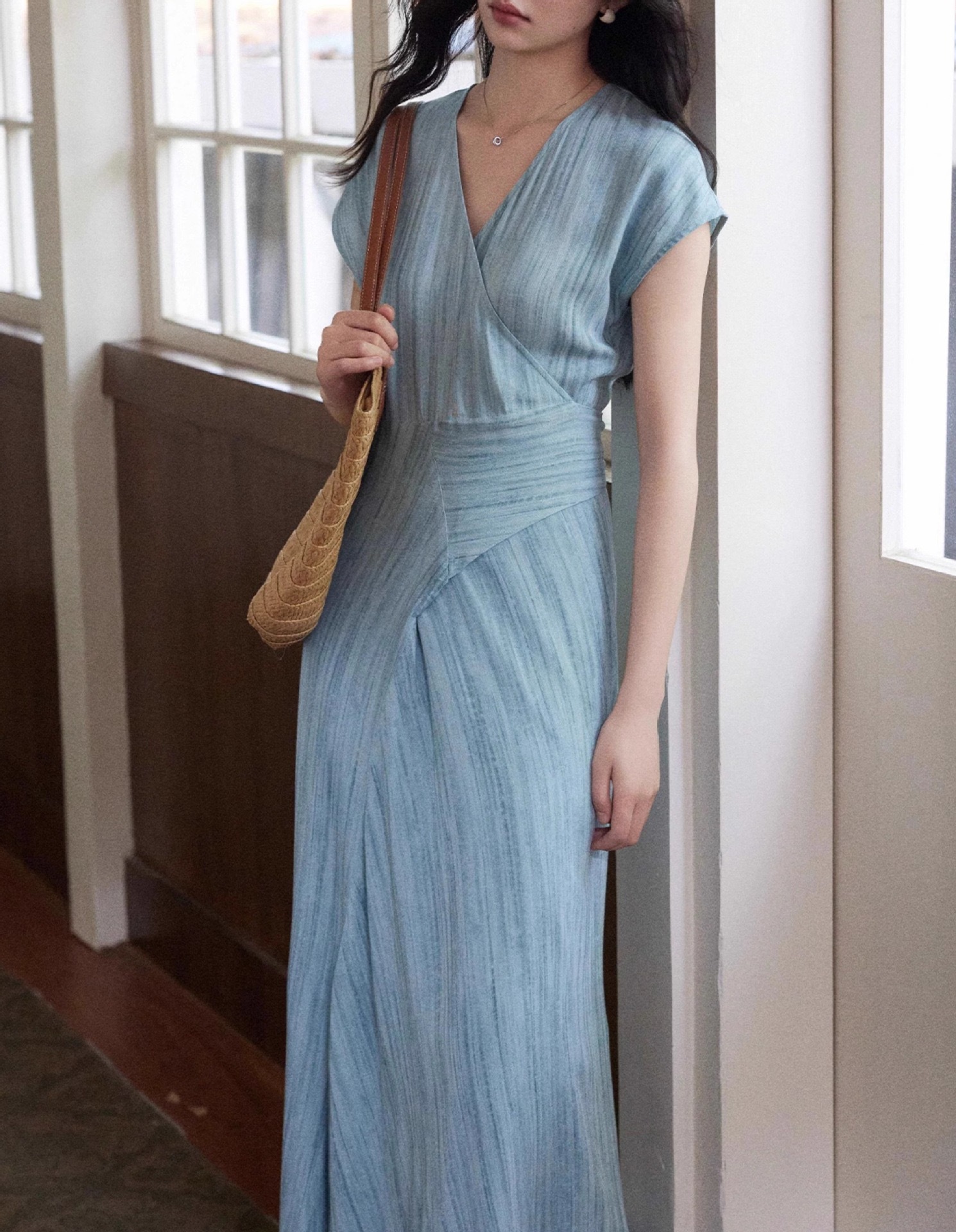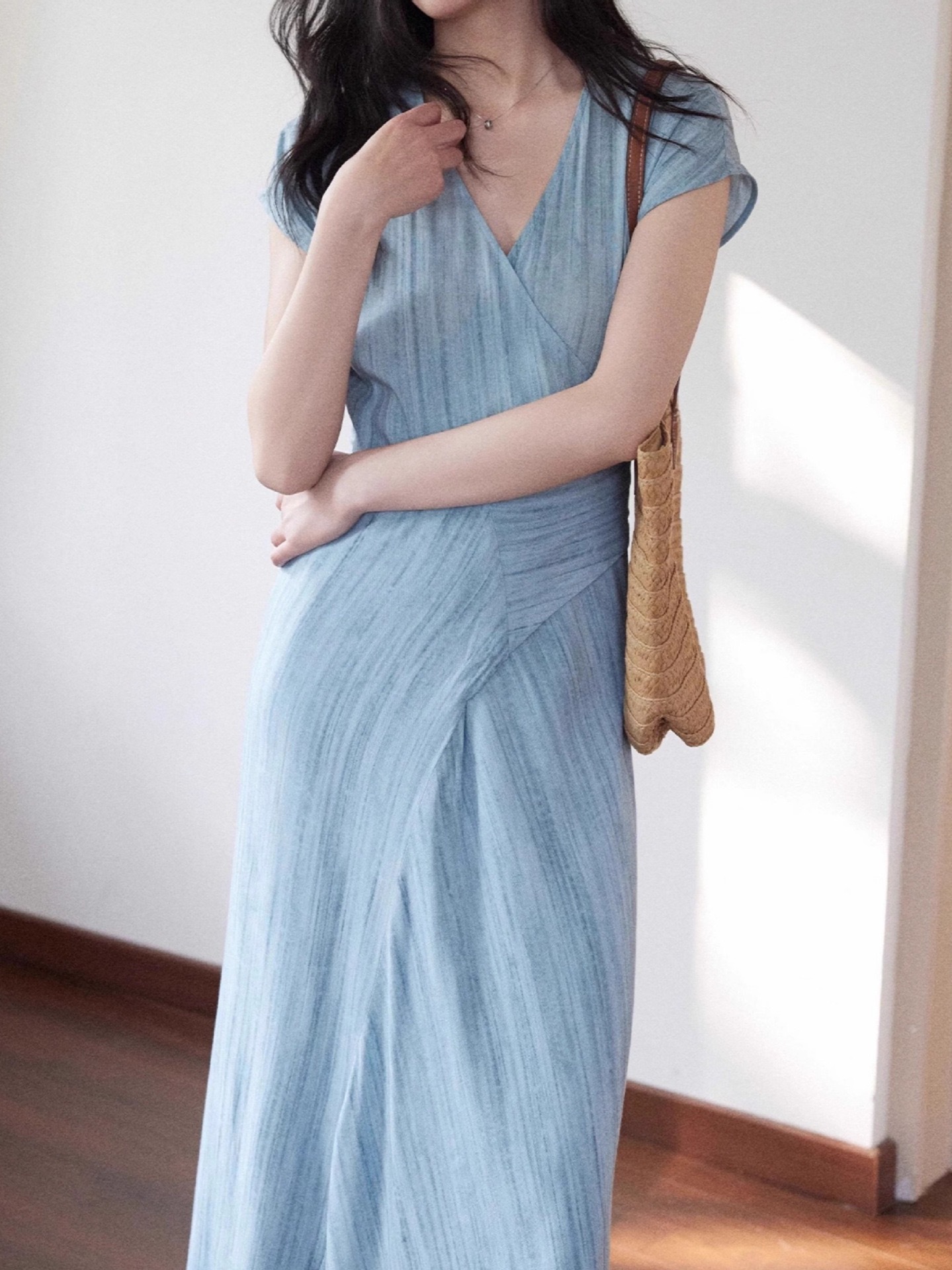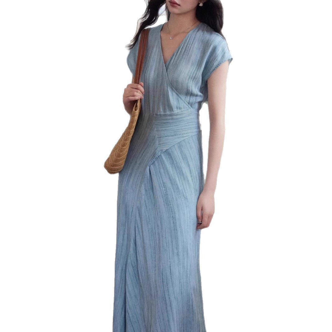 贰羊设计【瑾艳】仿炒色肌理短袖连衣裙女夏通勤大气简约气质裙子