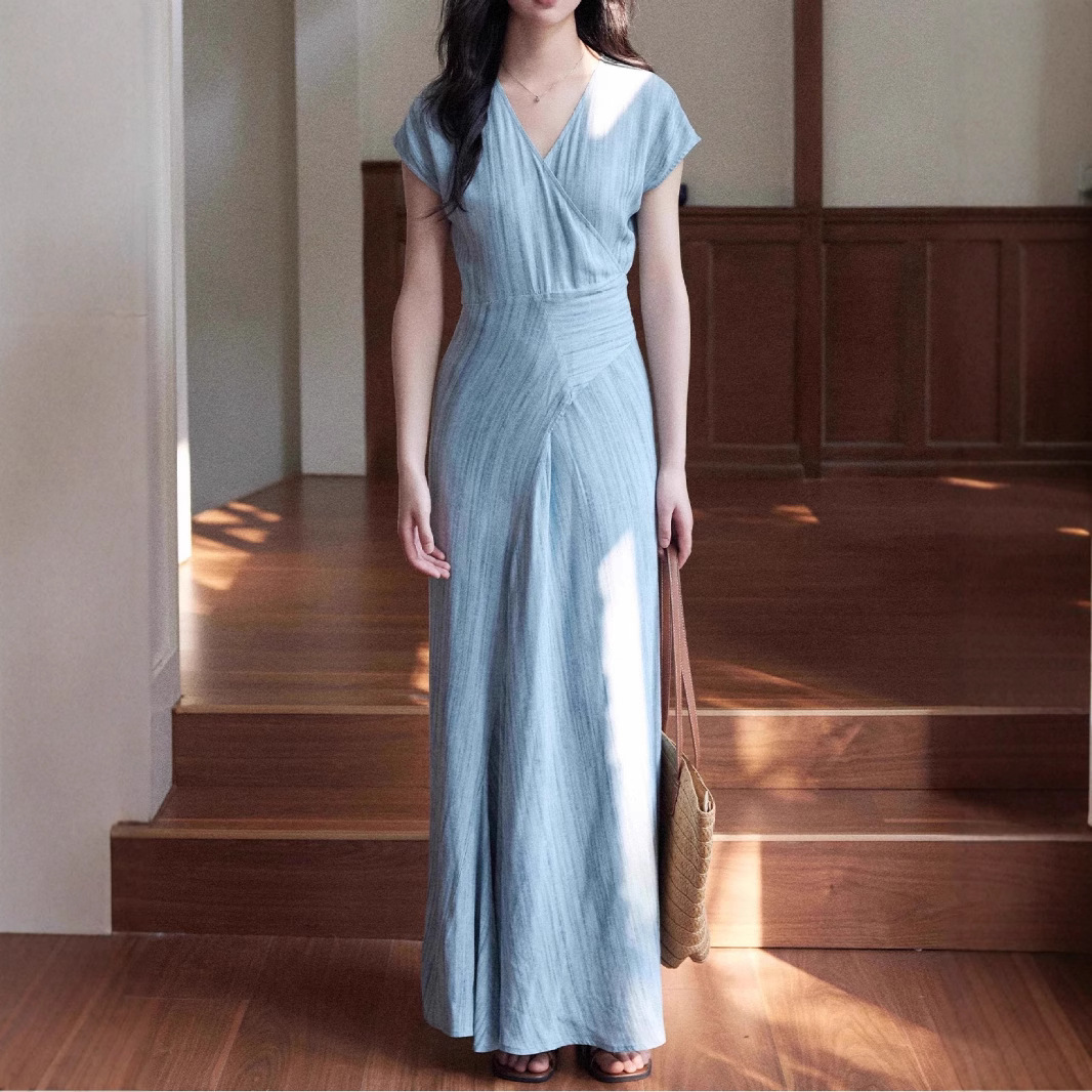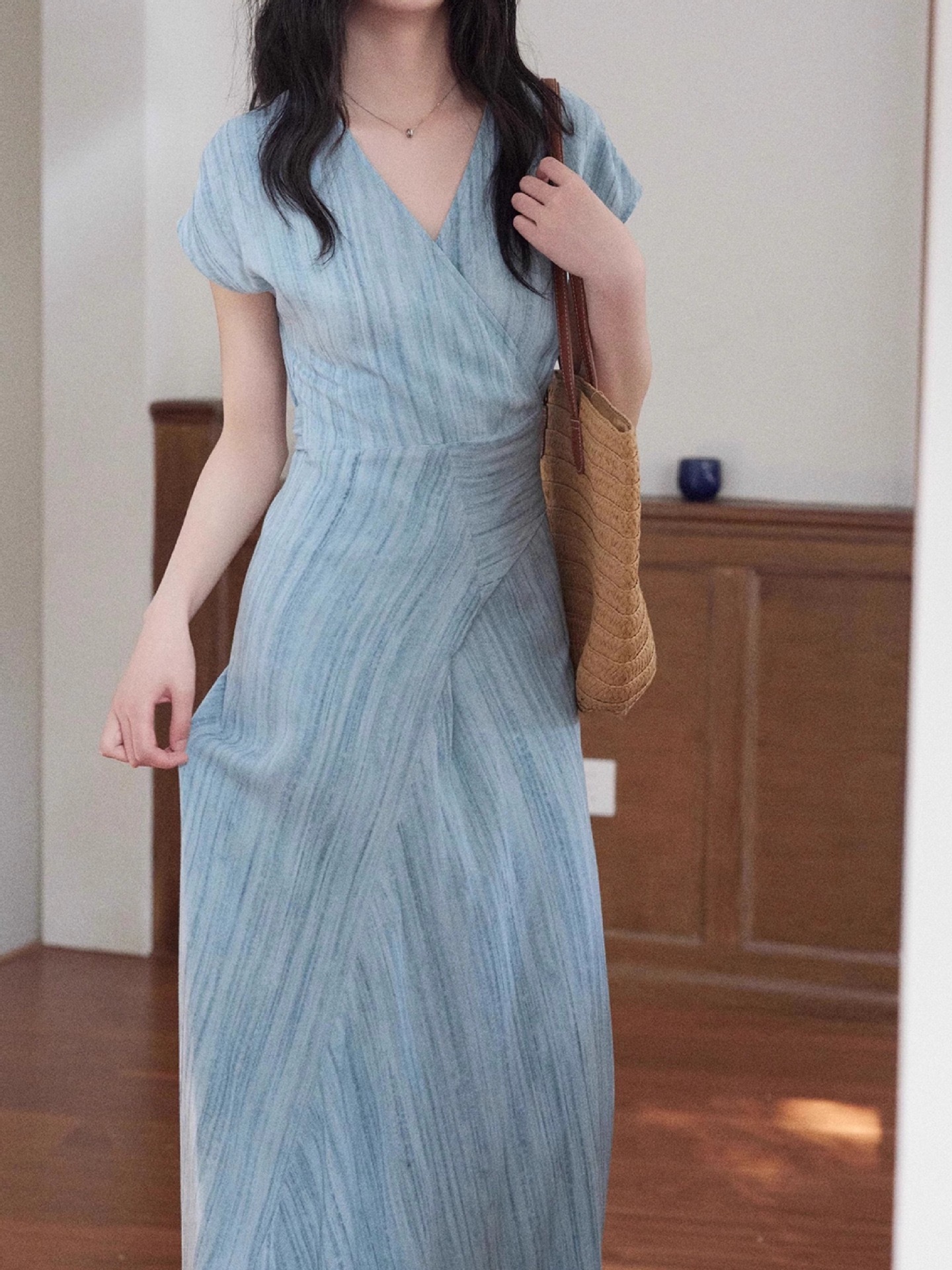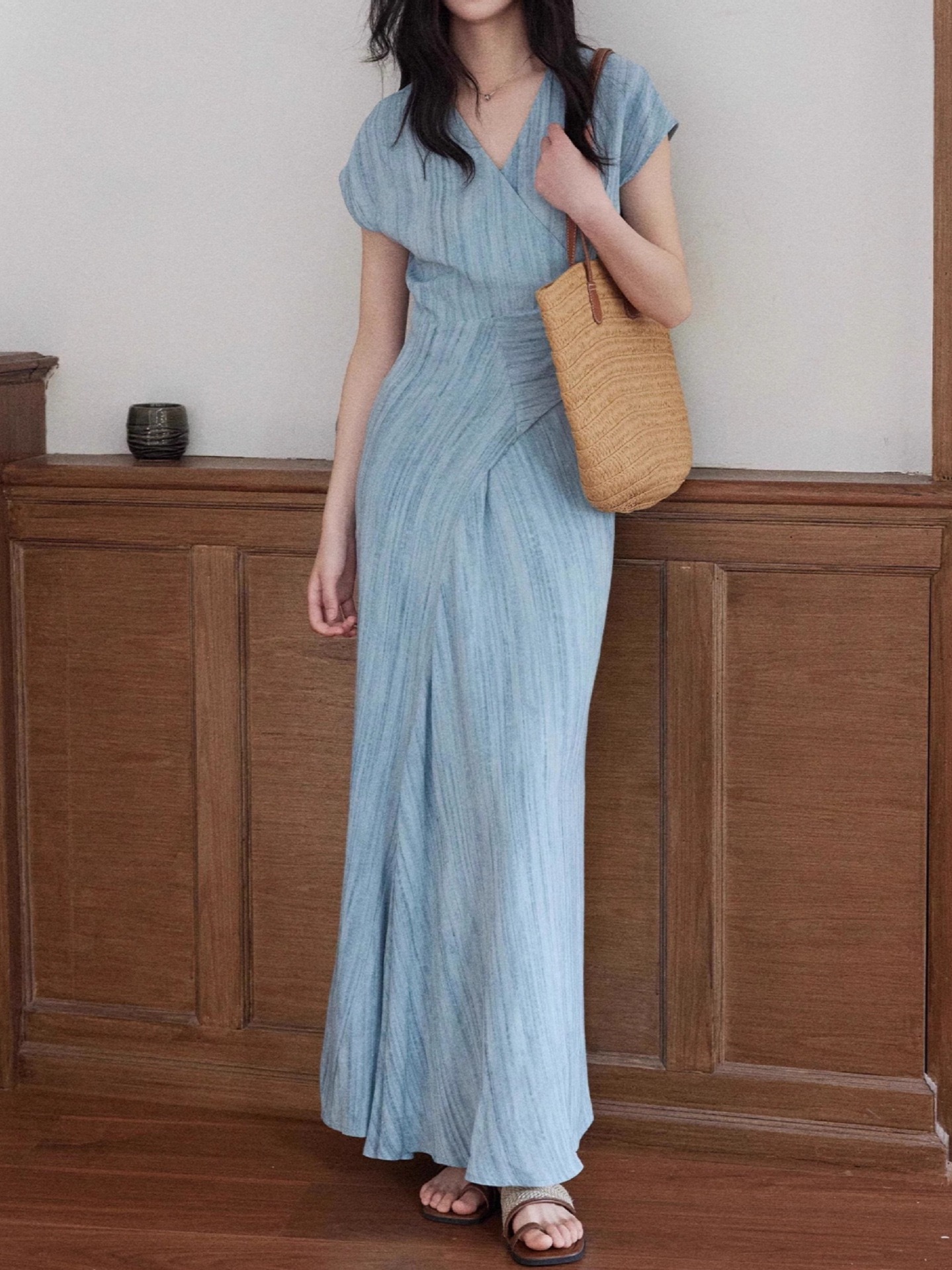 贰羊设计【瑾艳】仿炒色肌理短袖连衣裙女夏通勤大气简约气质裙子