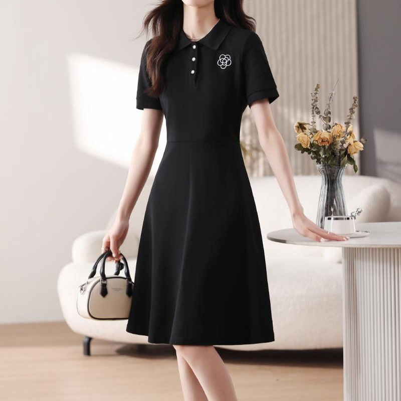 赫本风气质小黑裙连衣裙夏新款运动休闲显瘦T恤裙