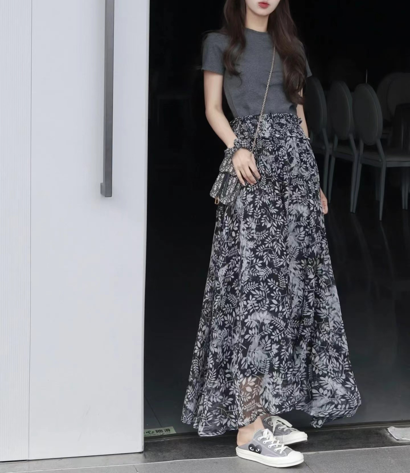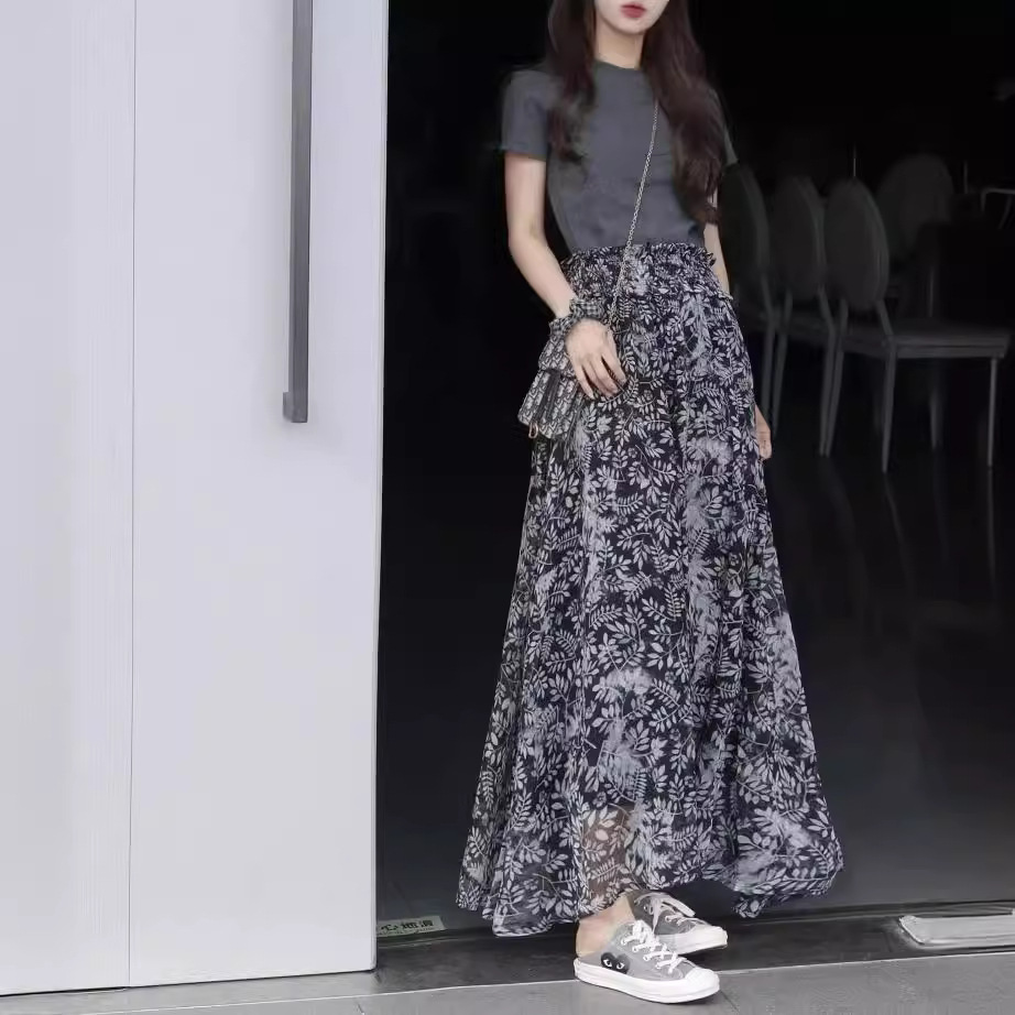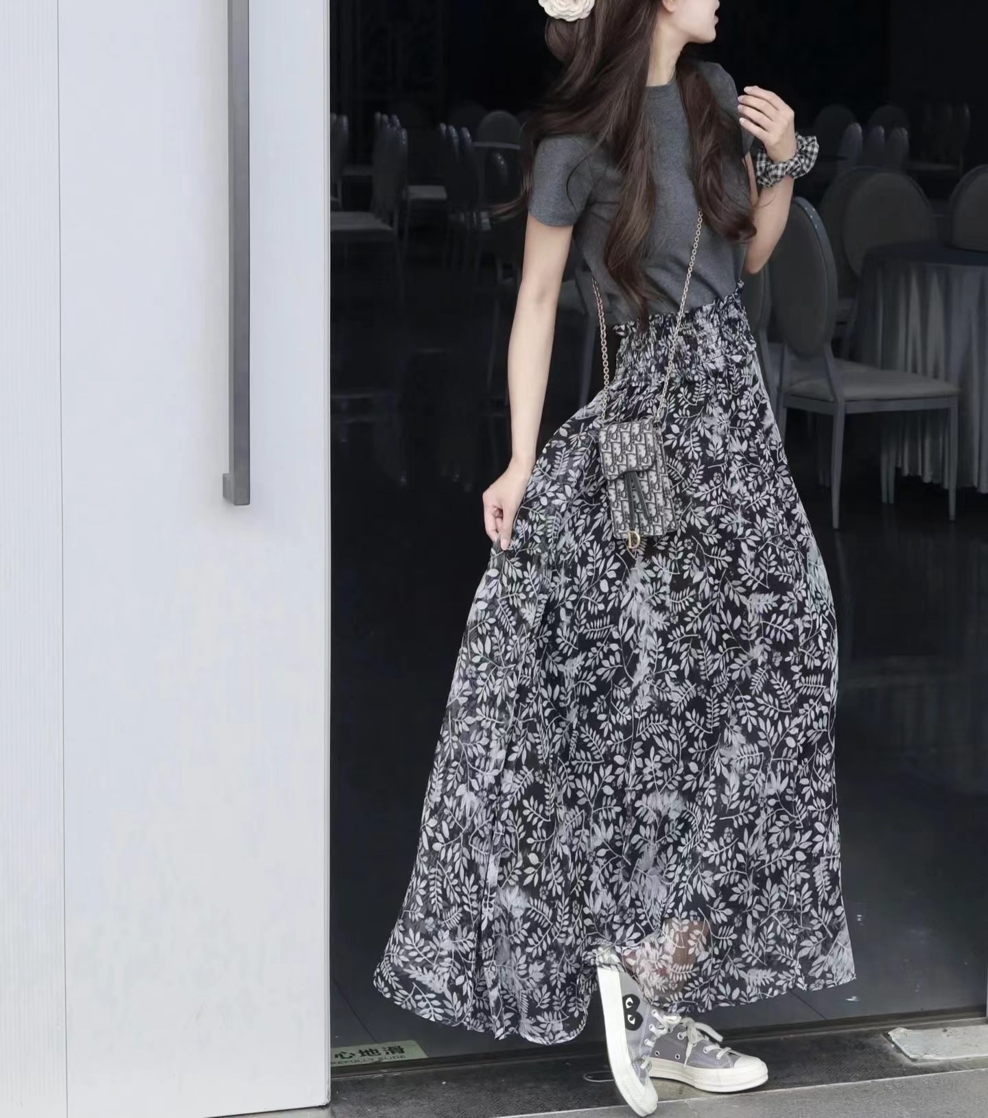 茶歇碎花半身裙女夏季中长款绝美法式设计感高腰收腰显瘦气质裙子