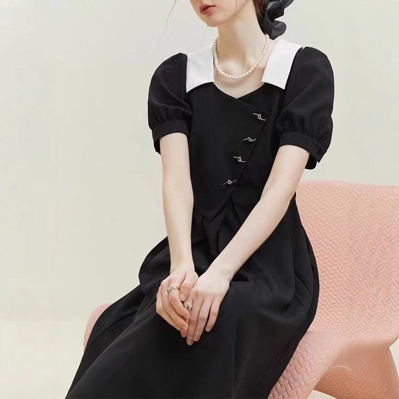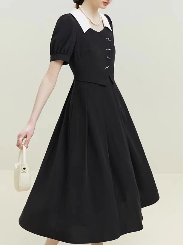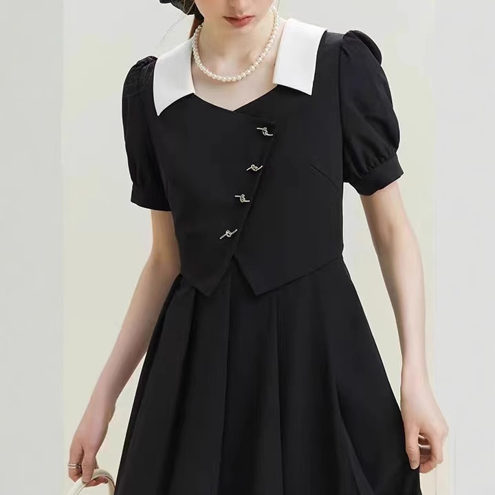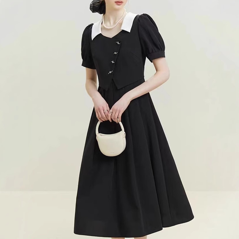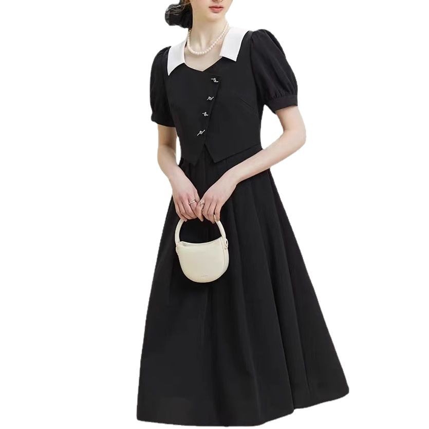 假两件法式气质连衣裙女夏季2025新款通勤显瘦简约不简