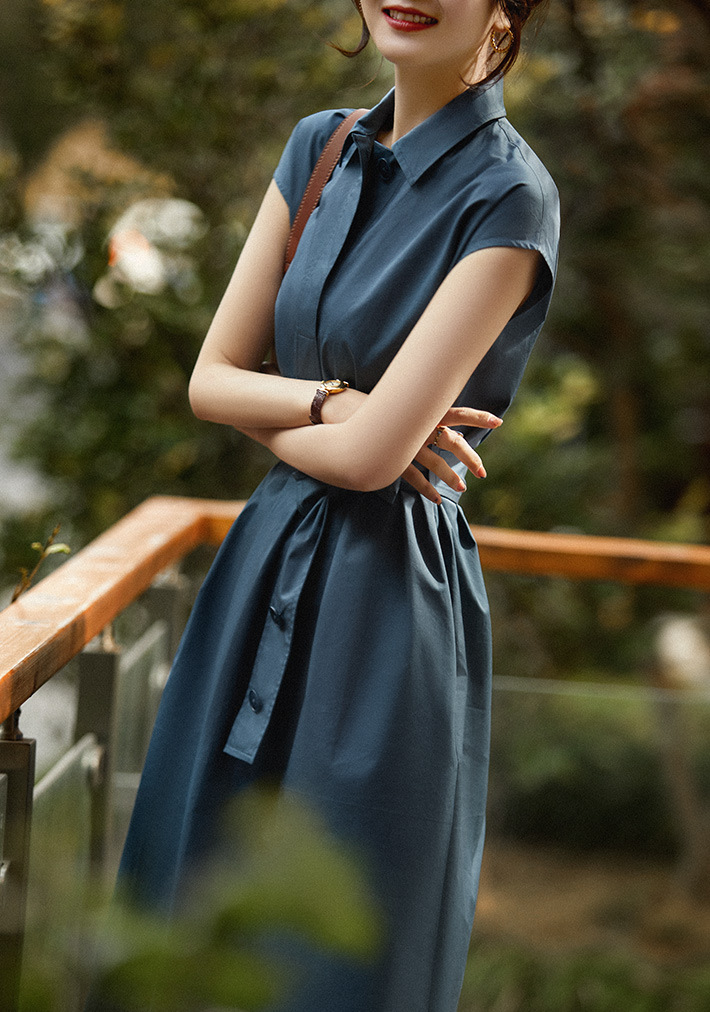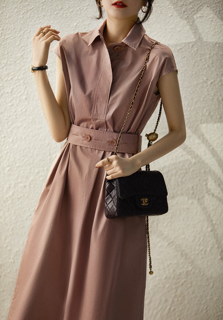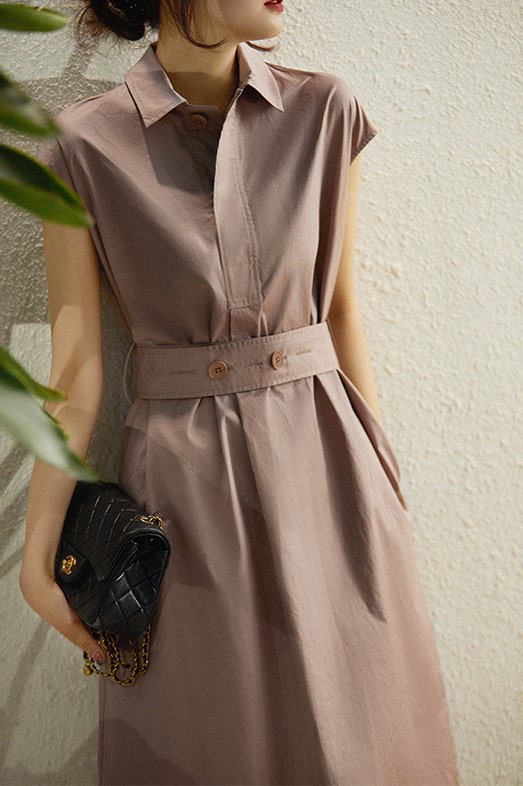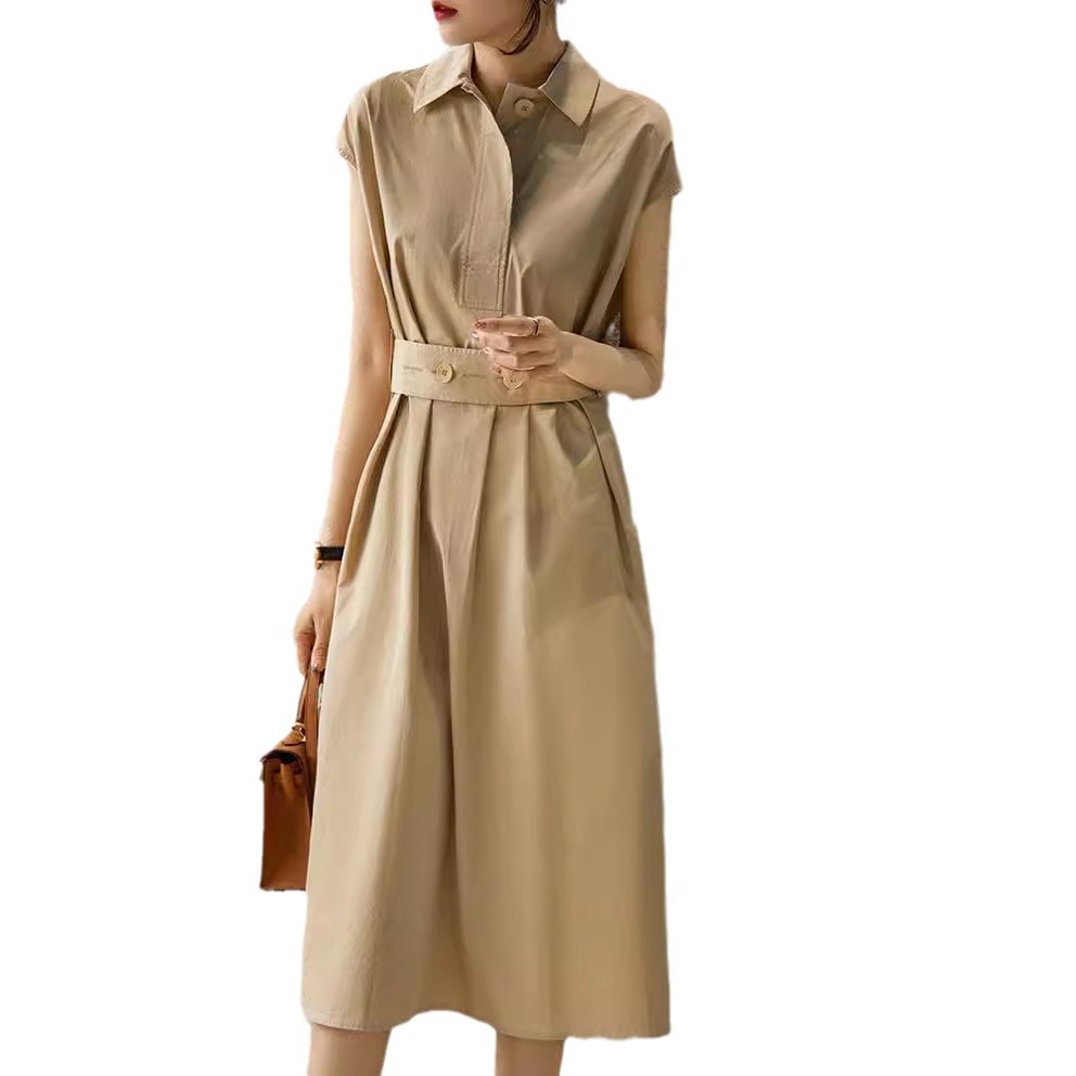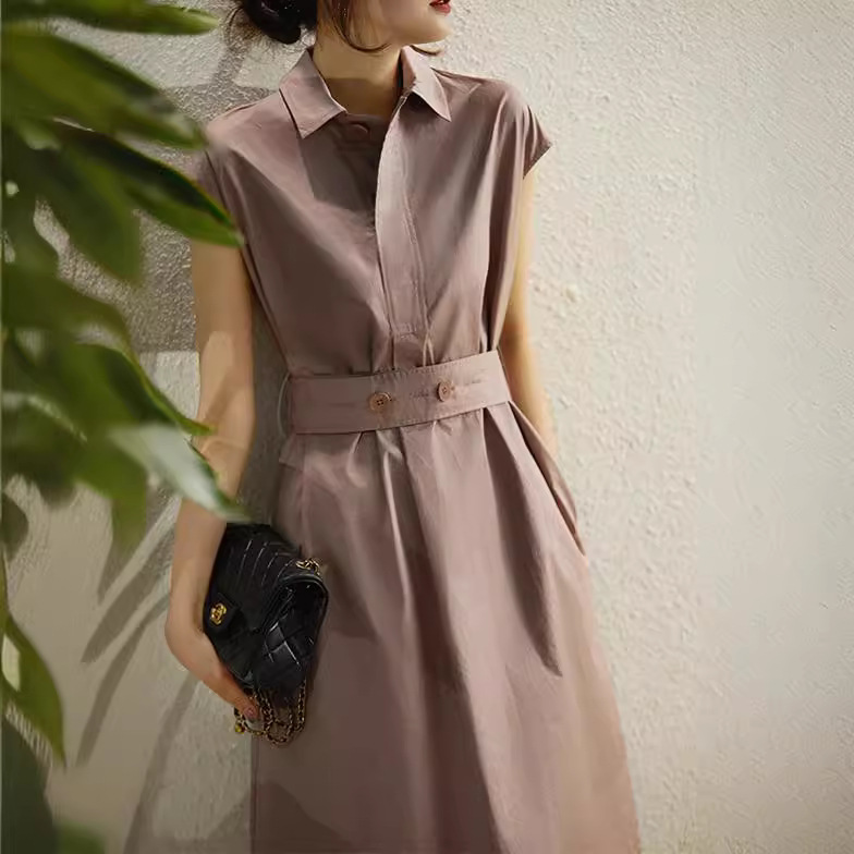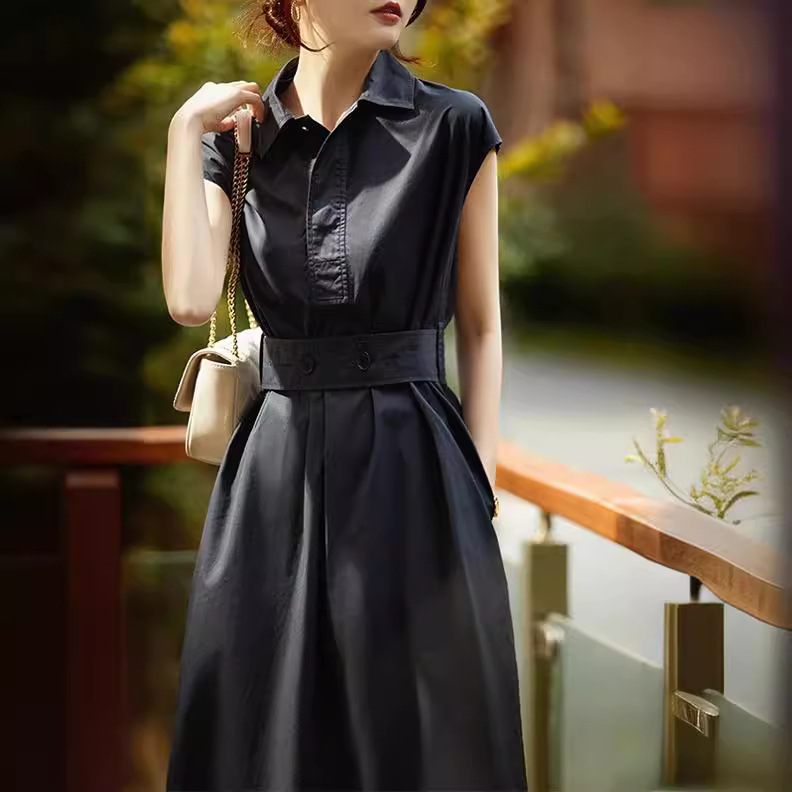 低调的质感文艺风 气质夏季女POLO领短袖连衣裙