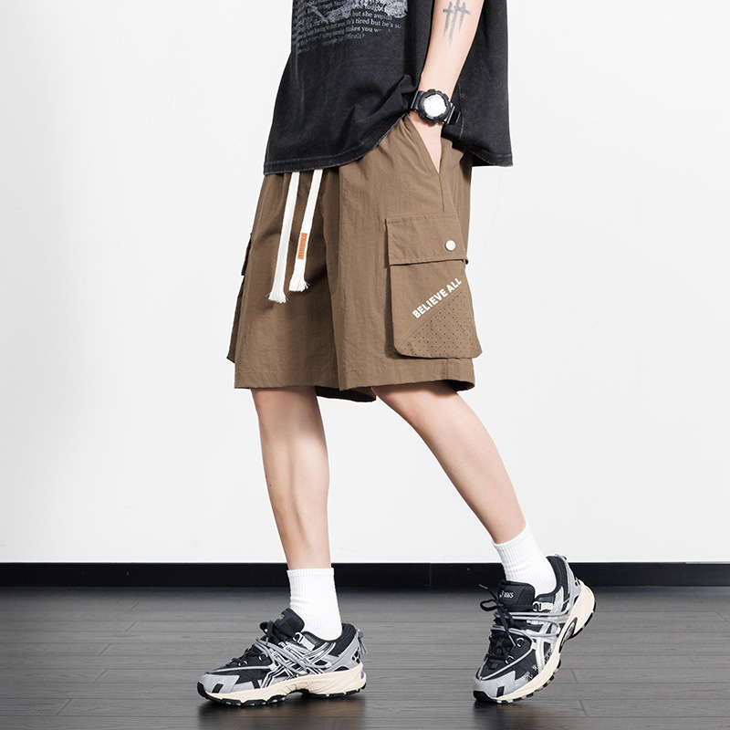 速干冰丝工装短裤男士夏季薄款宽松休闲松紧腰抽绳慵懒日常五分裤