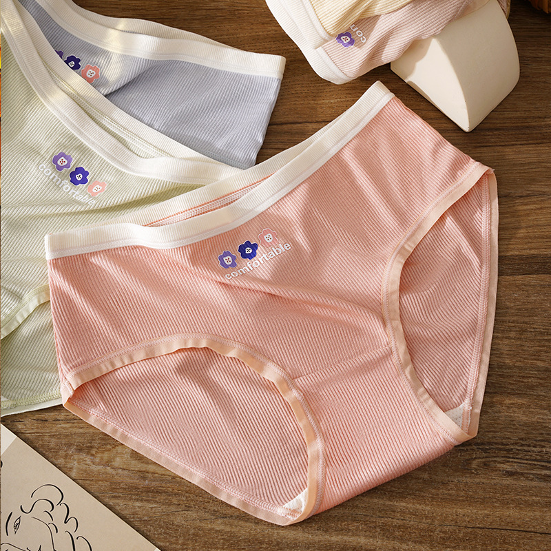 日系纯欲学生少女粘纤内裤螺纹马卡龙色中腰舒适透气包臀女士内裤