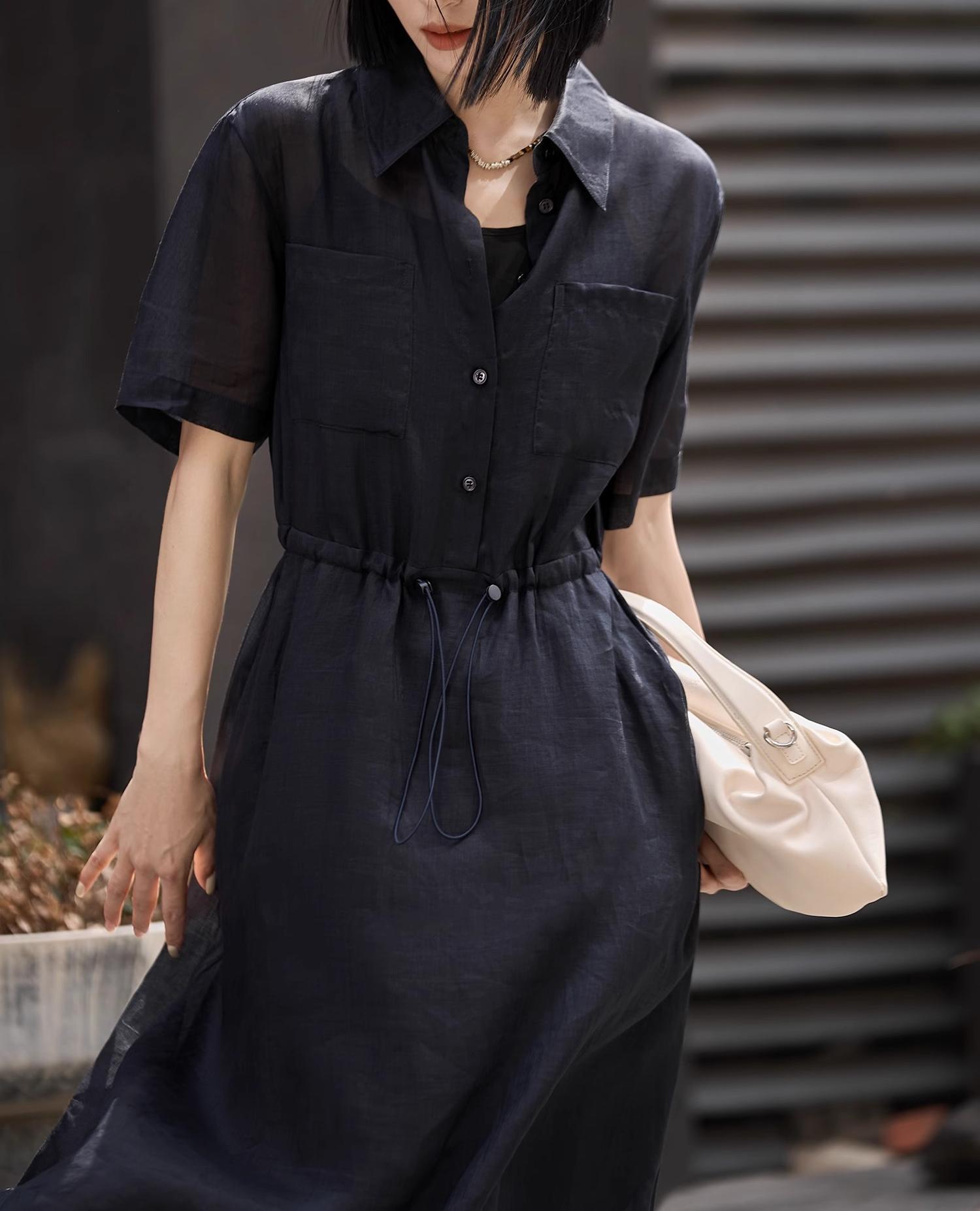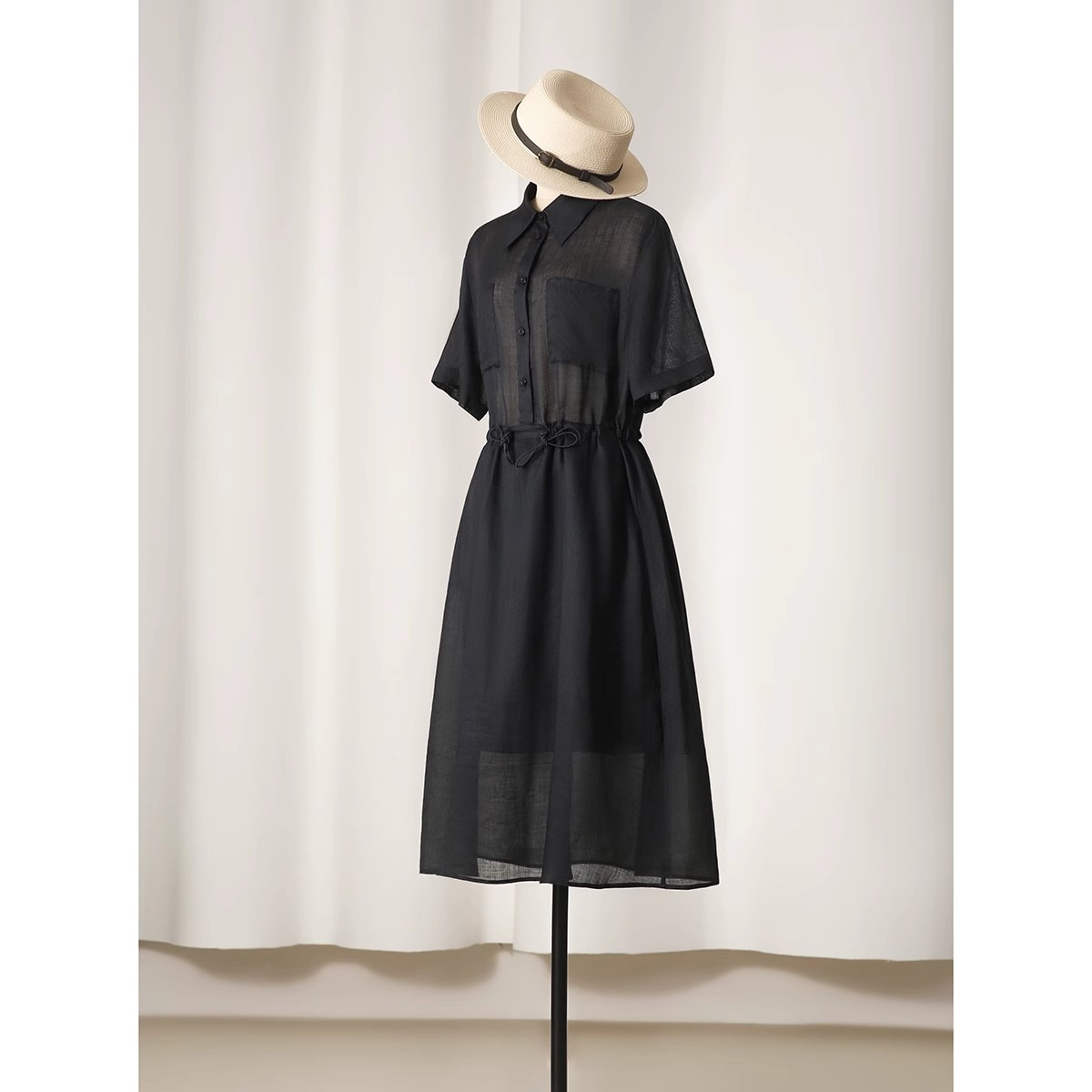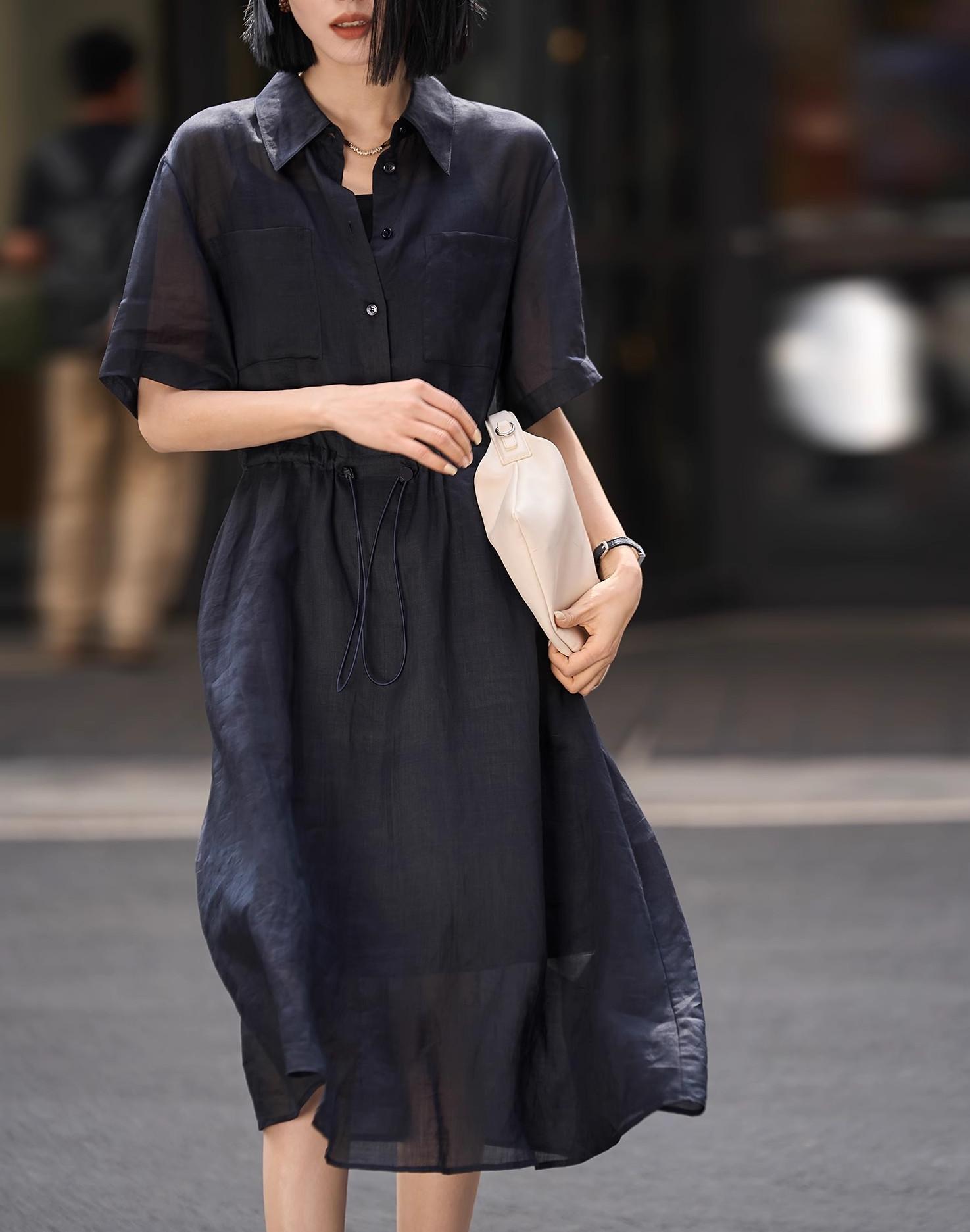 '空气'/轻薄透气!气质翻领女夏季可调节腰衬衫连衣裙