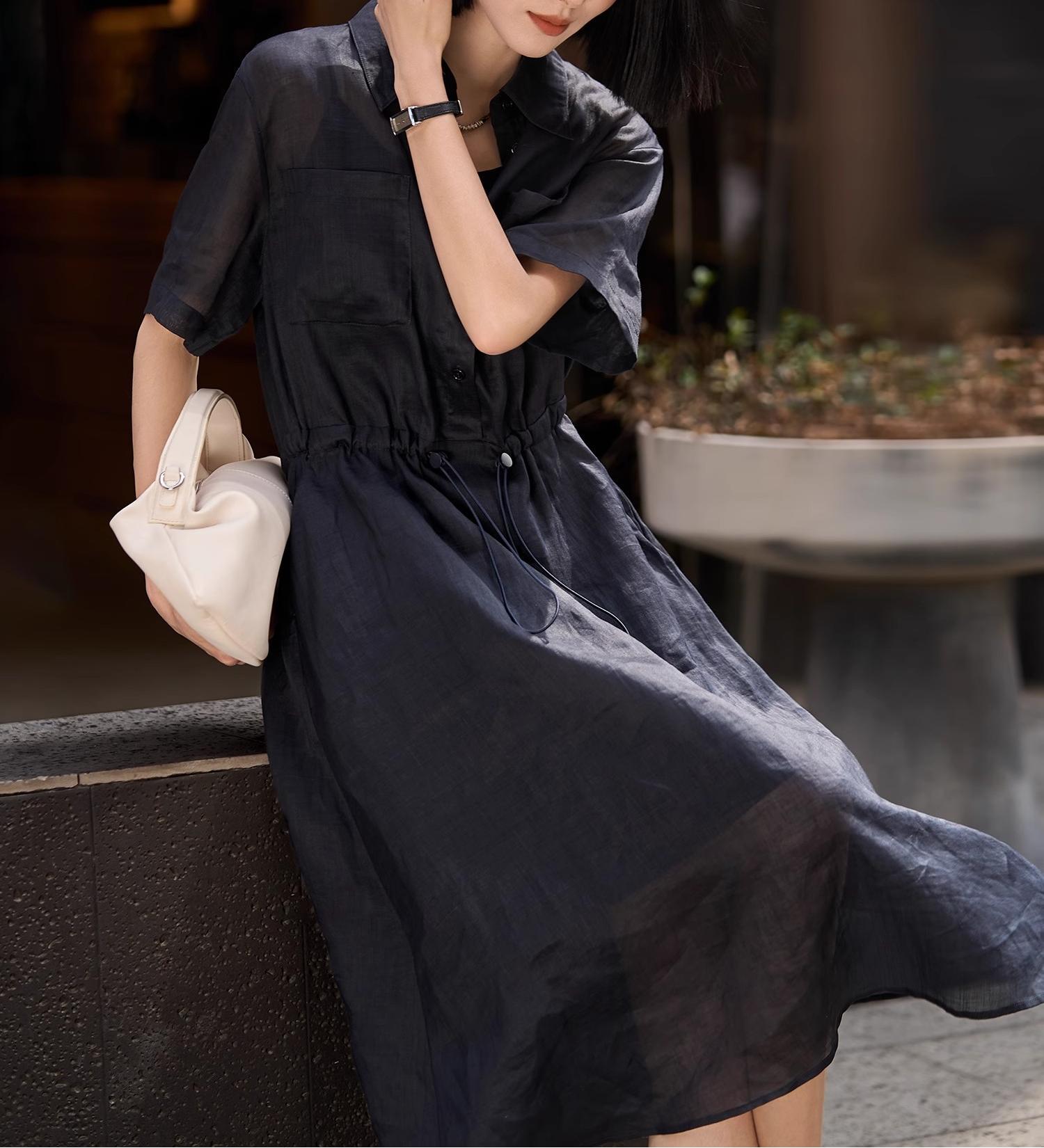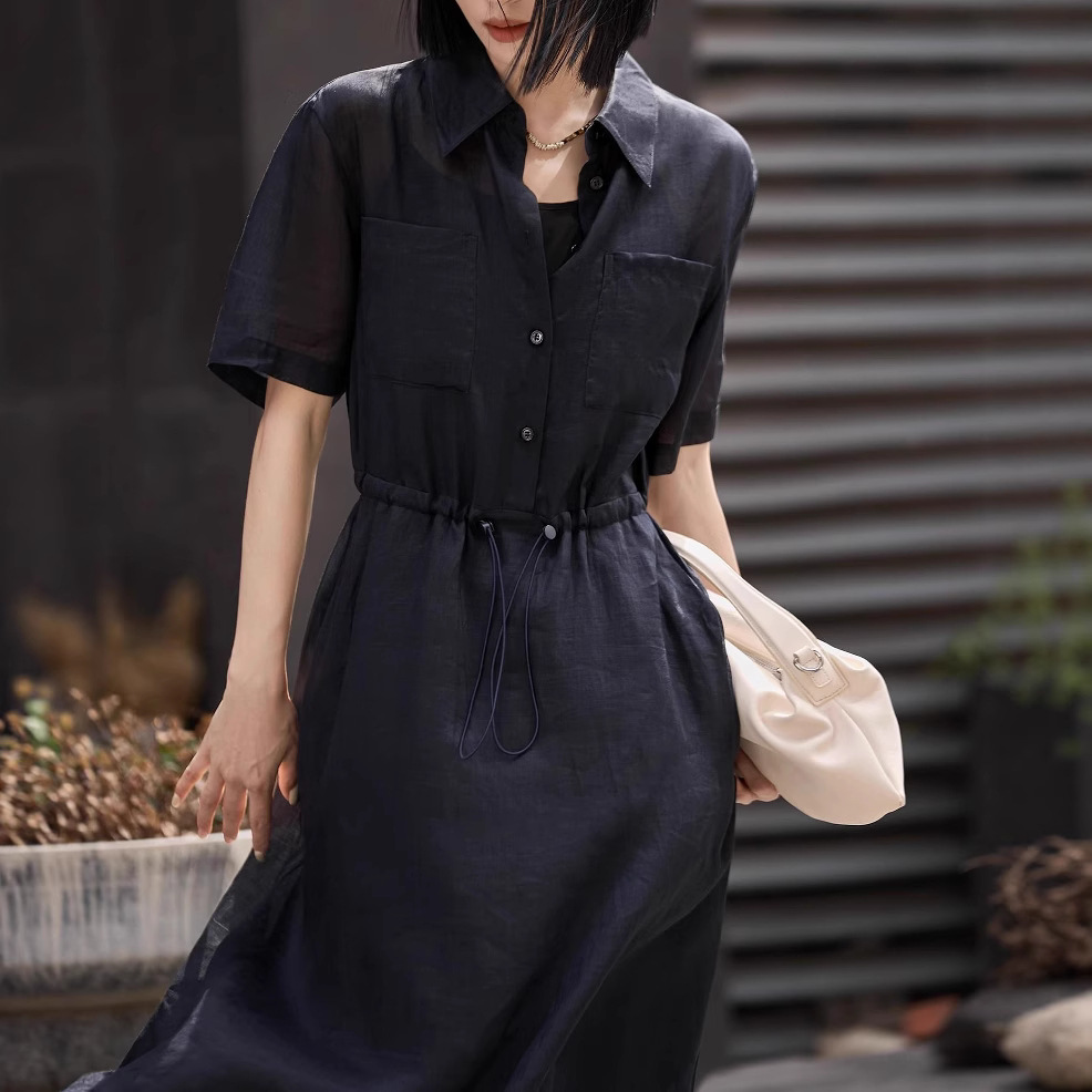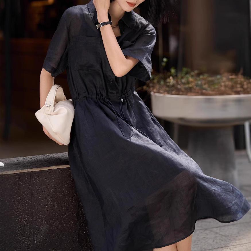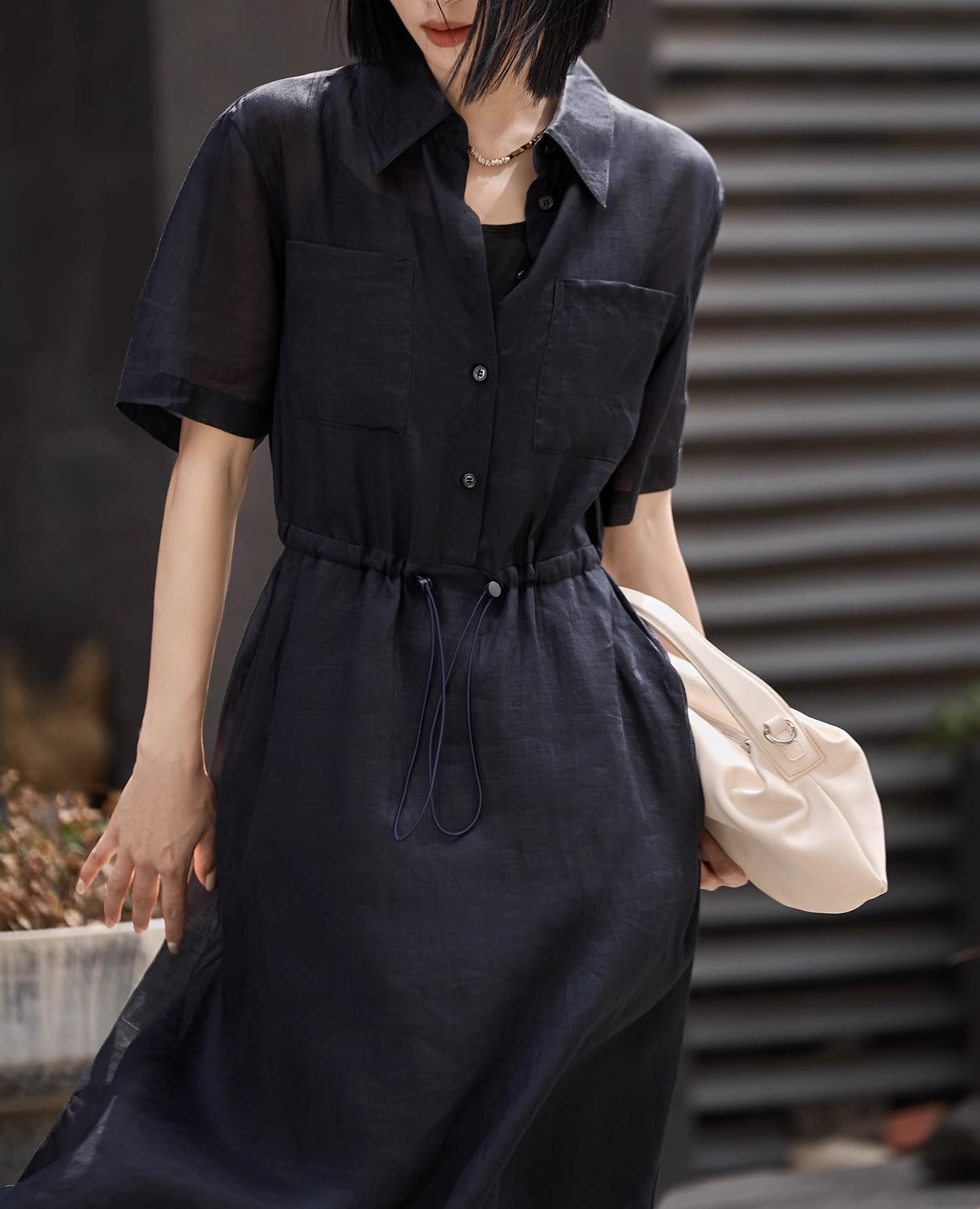 '空气'/轻薄透气!气质翻领女夏季可调节腰衬衫连衣裙