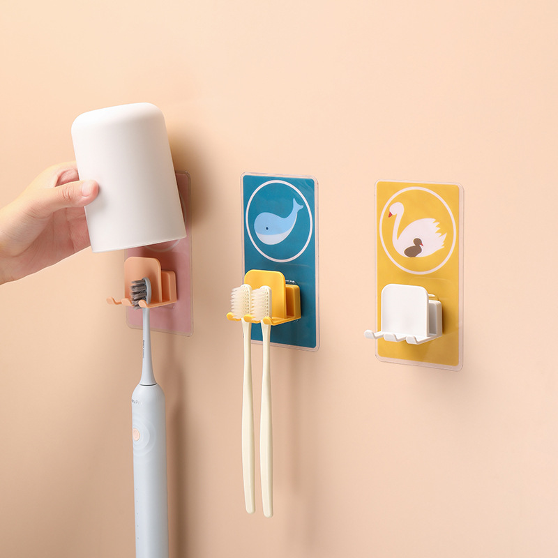 牙刷架卫生间置物架创意卡通牙刷支架无痕免打孔漱口杯牙刷架挂钩