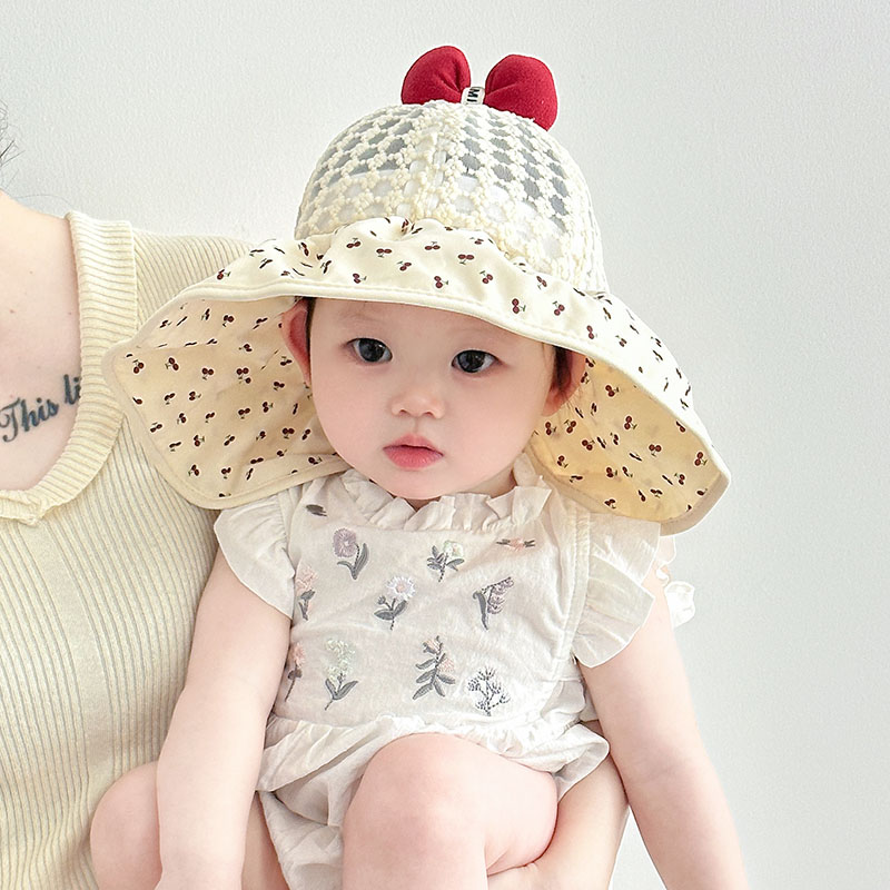 婴儿防晒帽子夏季女童网眼太阳帽大帽檐女宝宝夏天薄款外出遮阳帽