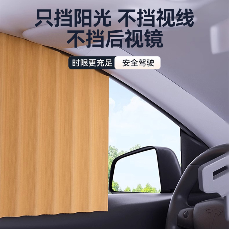- 5A级加厚面料【米黄金-全车4片】全磁滑轨★遮光防晒