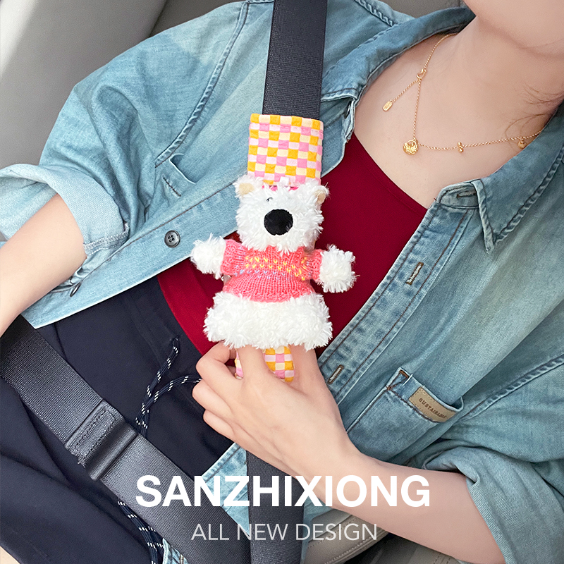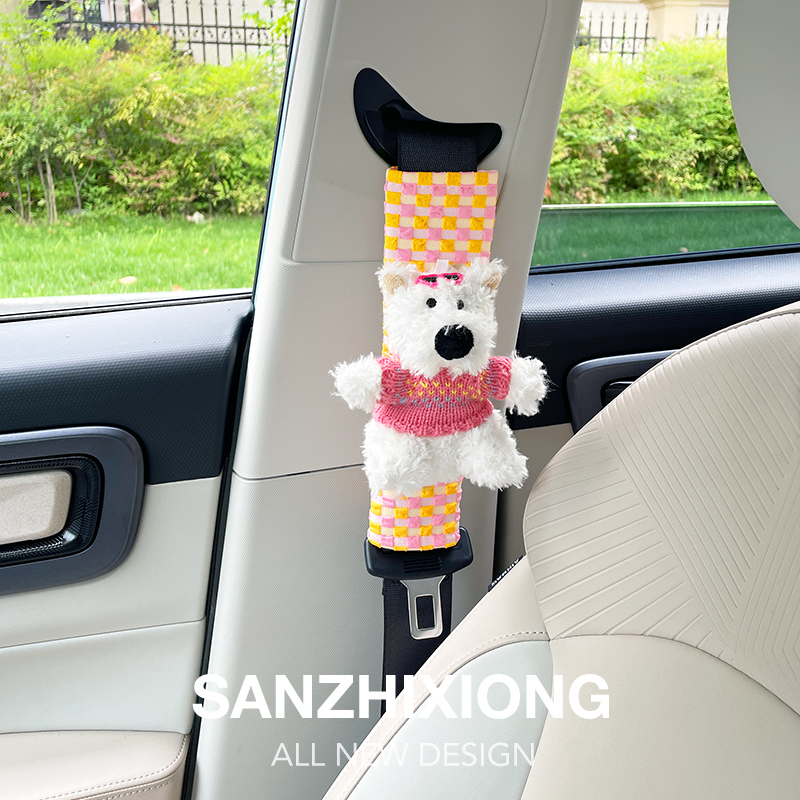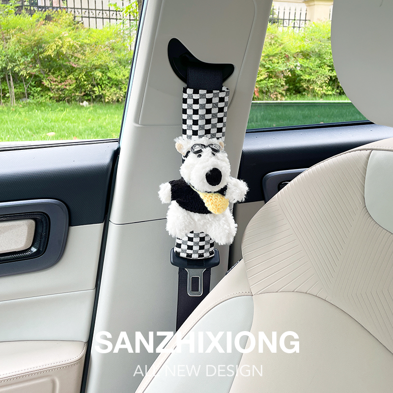 毛绒潦草狗汽车安全带护肩套创意车载安全带防勒保护套车内装饰