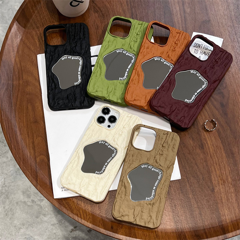 ins秋冬褶皱纹镜面适用苹果14手机壳iPhone15promax简约13/12软11