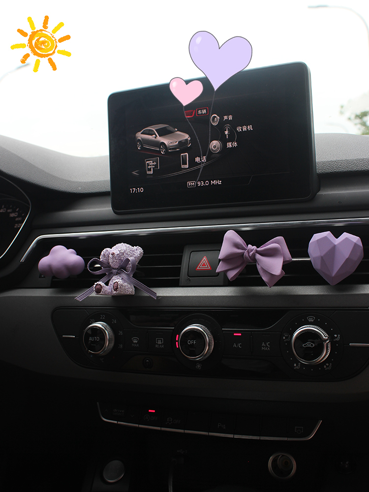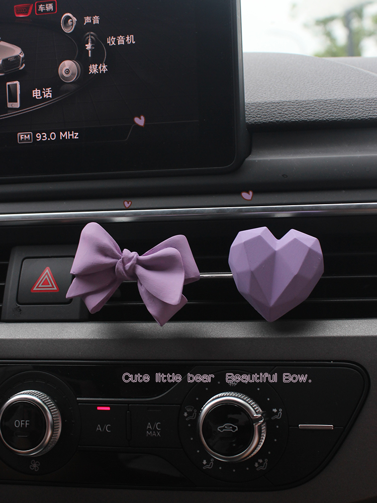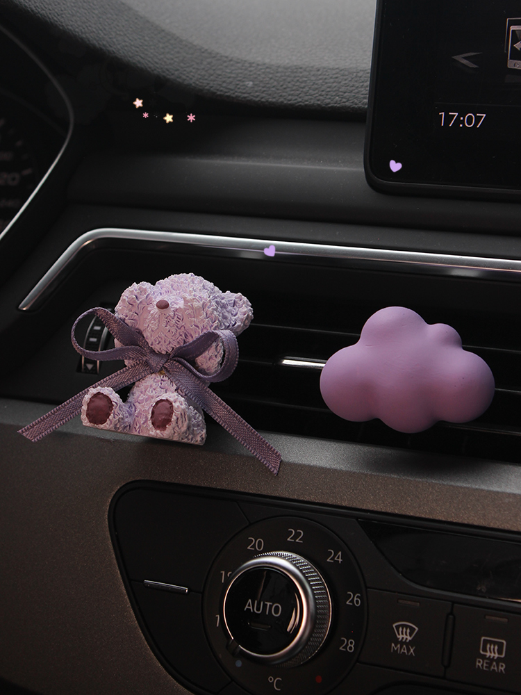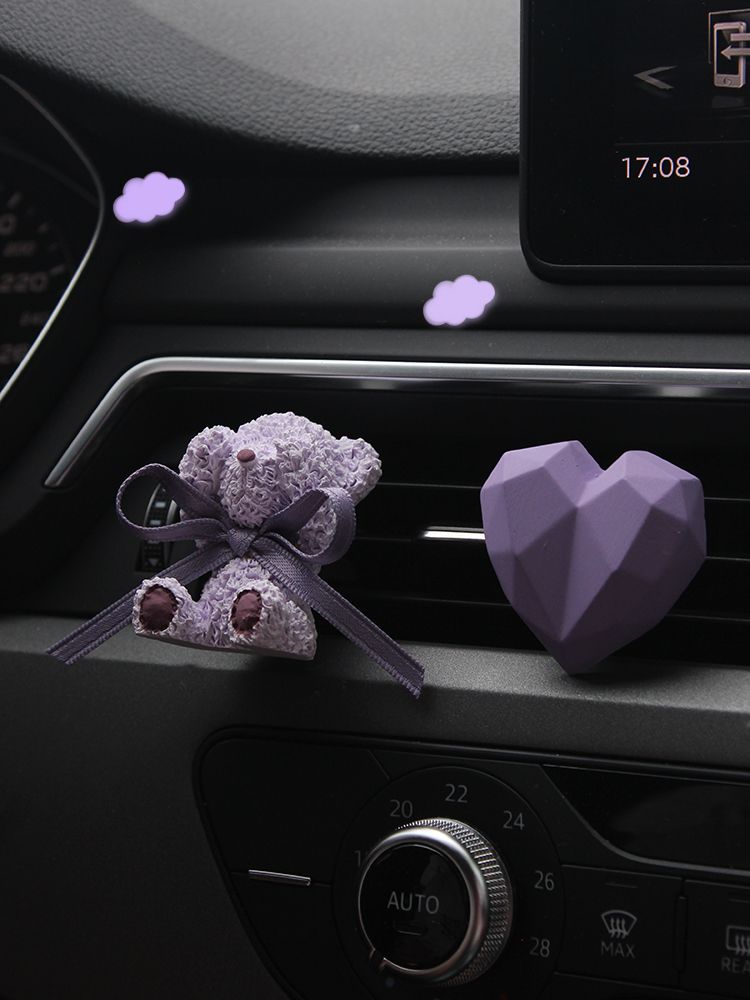 紫色蝴蝶结小熊车载香薰汽车空调出风口香水扩香石摆件