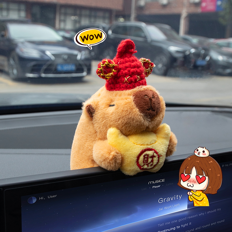 2025新款汽车内饰品卡皮巴拉水豚车载怀挡转向灯雨刮器中控屏摆件