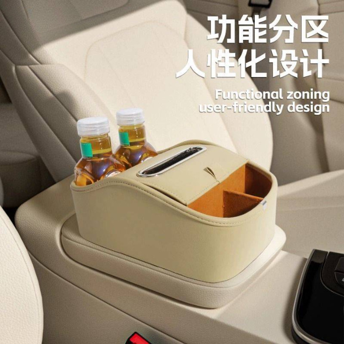 车载纸巾盒感汽车内多功能置物盒扶手箱抽纸盒车用