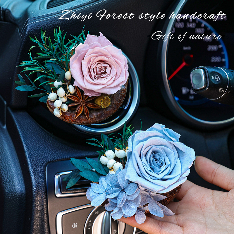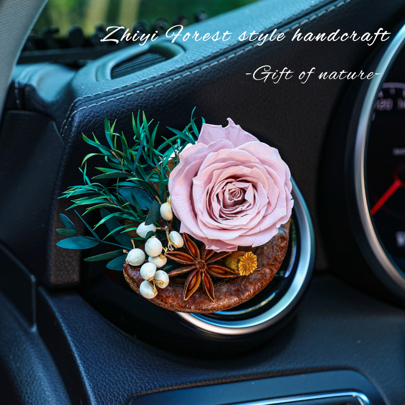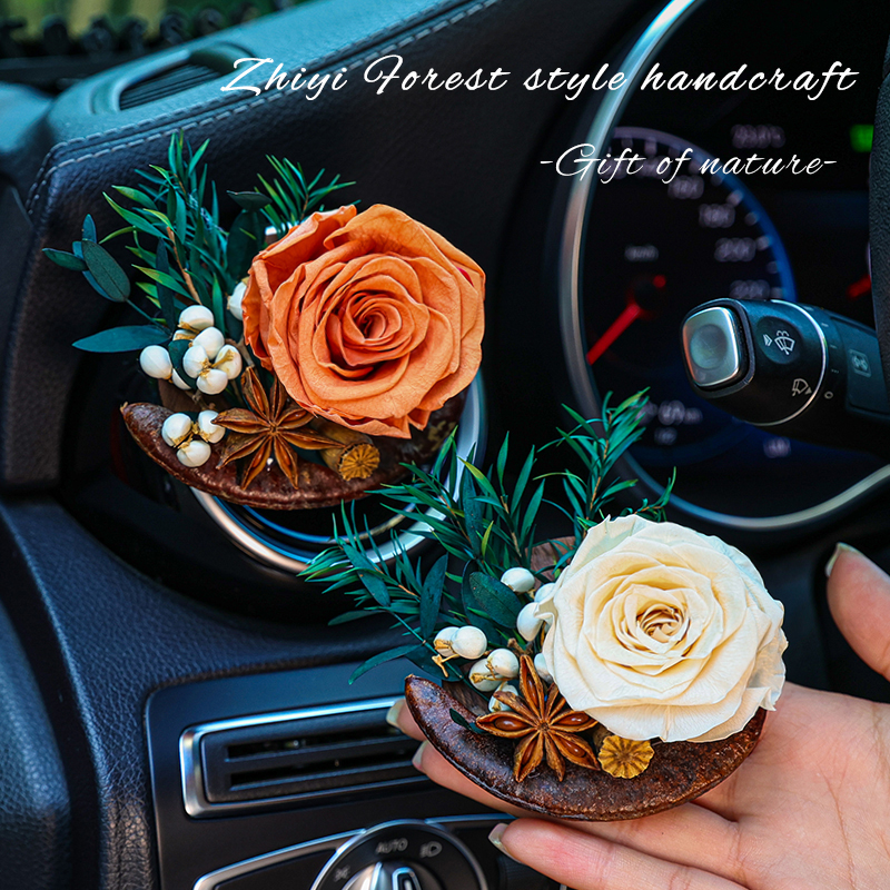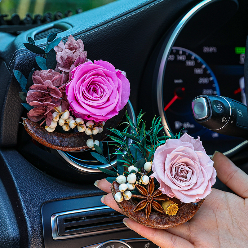 出风口车载香薰扩香器玫瑰高级感汽车内饰装饰植物真花森系风