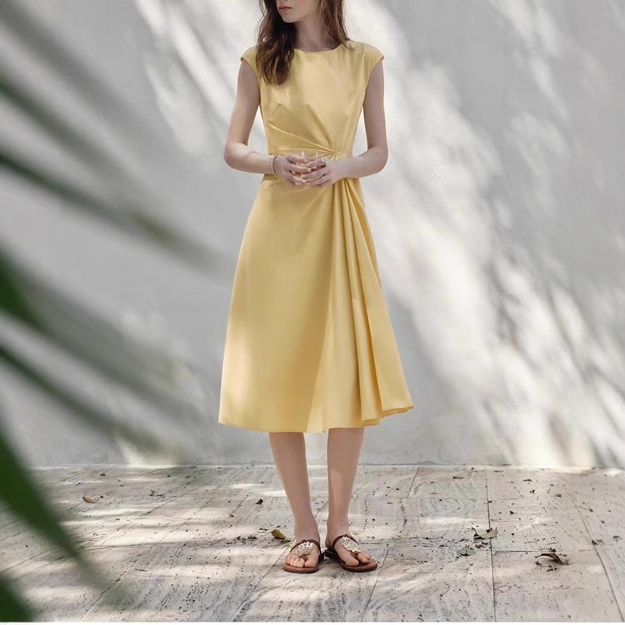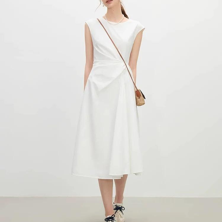 范思蓝恩 设计感扭结收腰连衣裙女2025夏季新款无袖A字小白裙