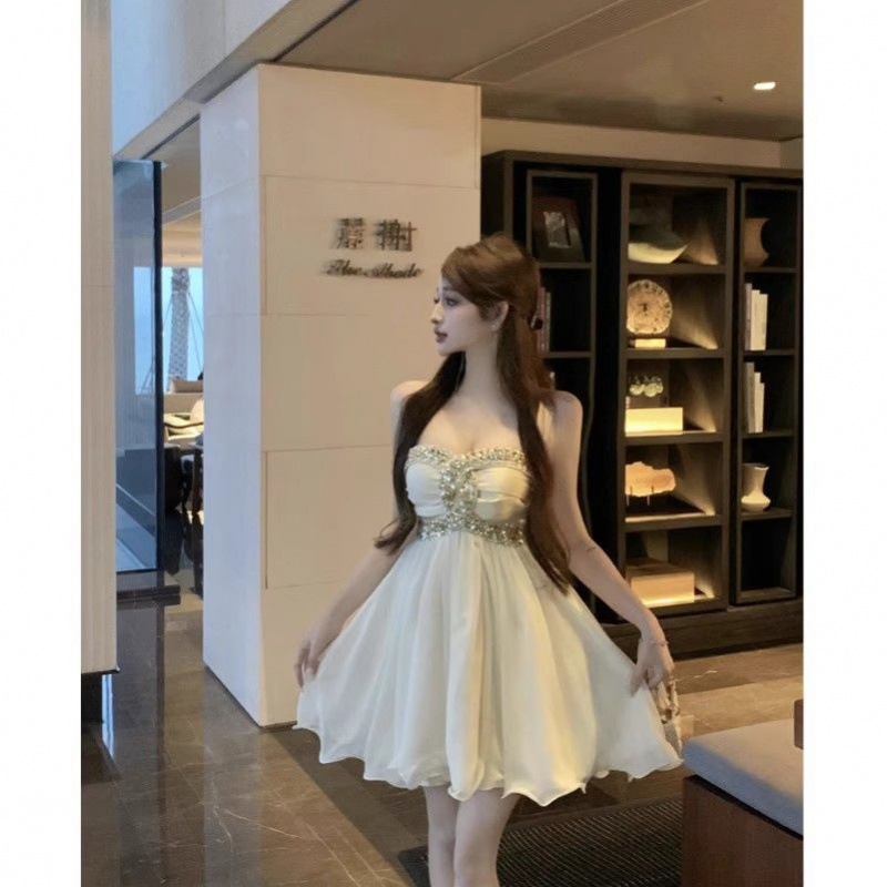 高档感钉钻纯欲风亮片连衣裙女夏季新款性感收腰显瘦抹胸短裙