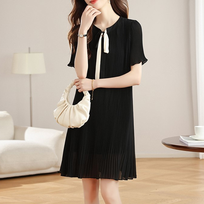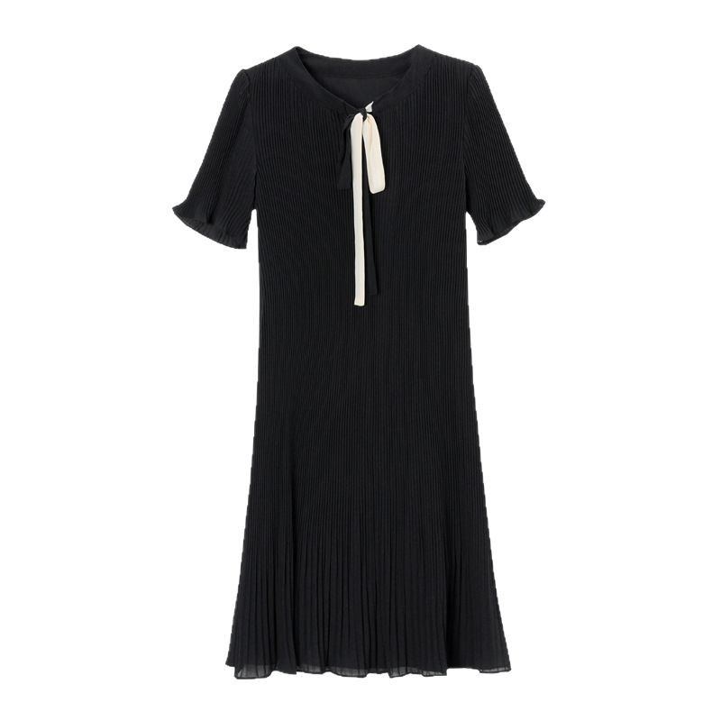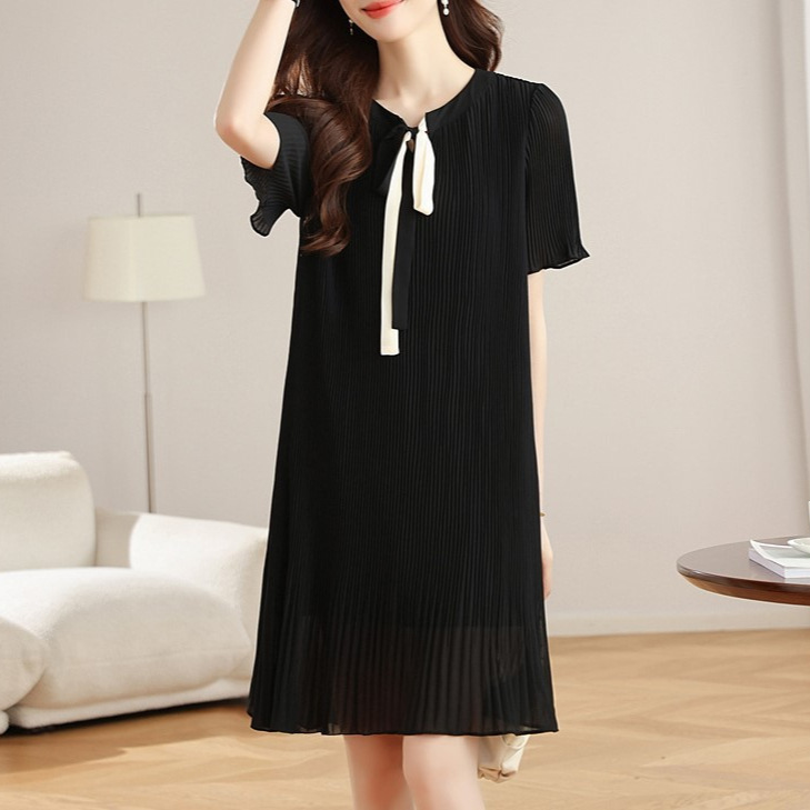 气质推荐~夏季女新款宽松遮肉显瘦气质小黑裙休闲雪纺百褶裙