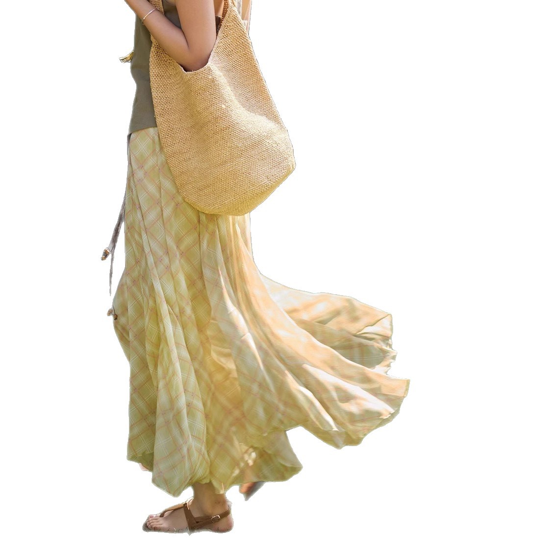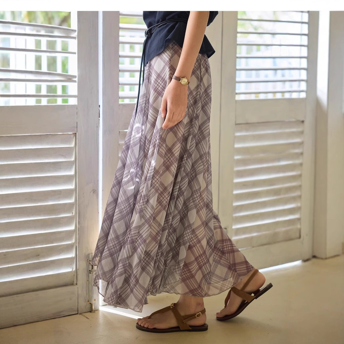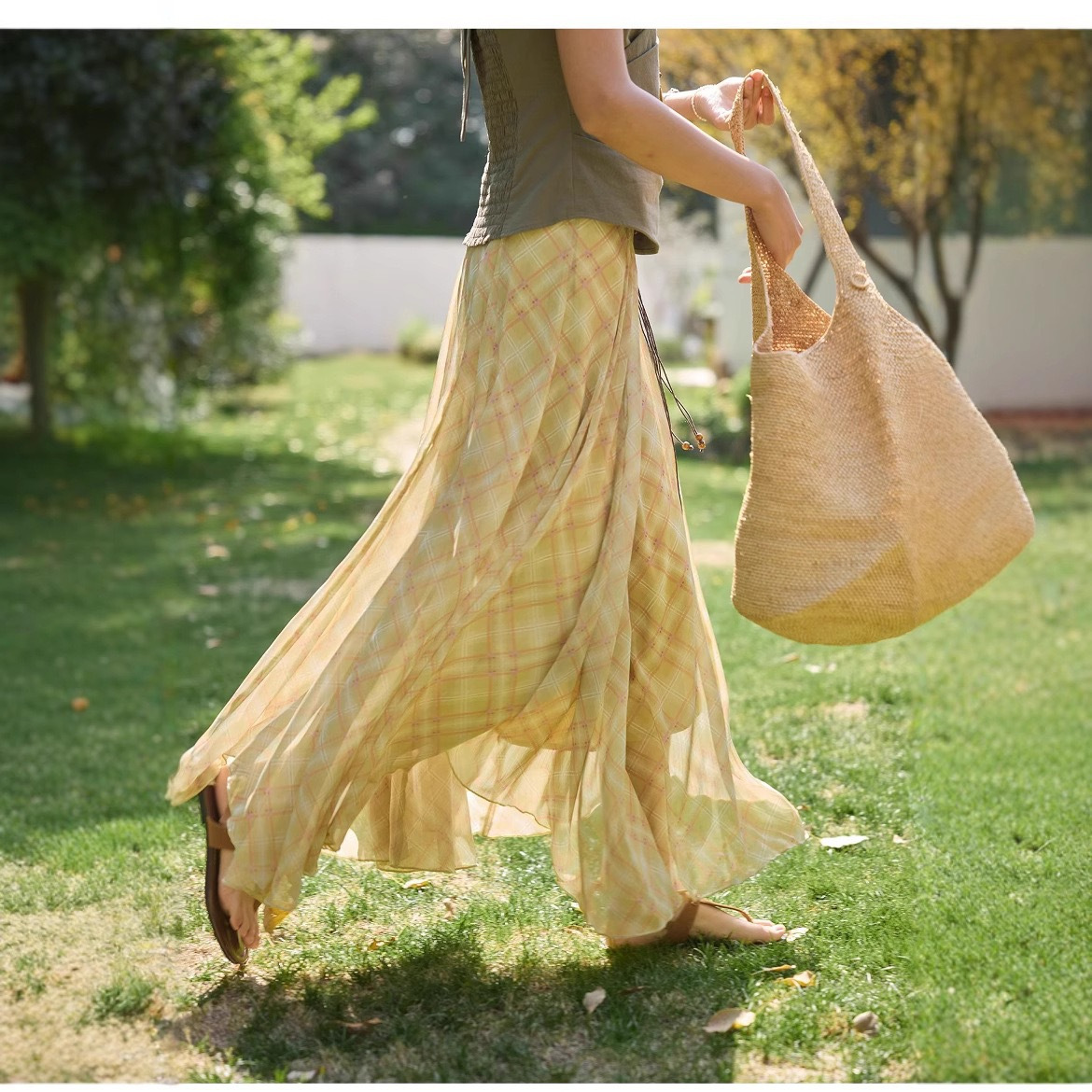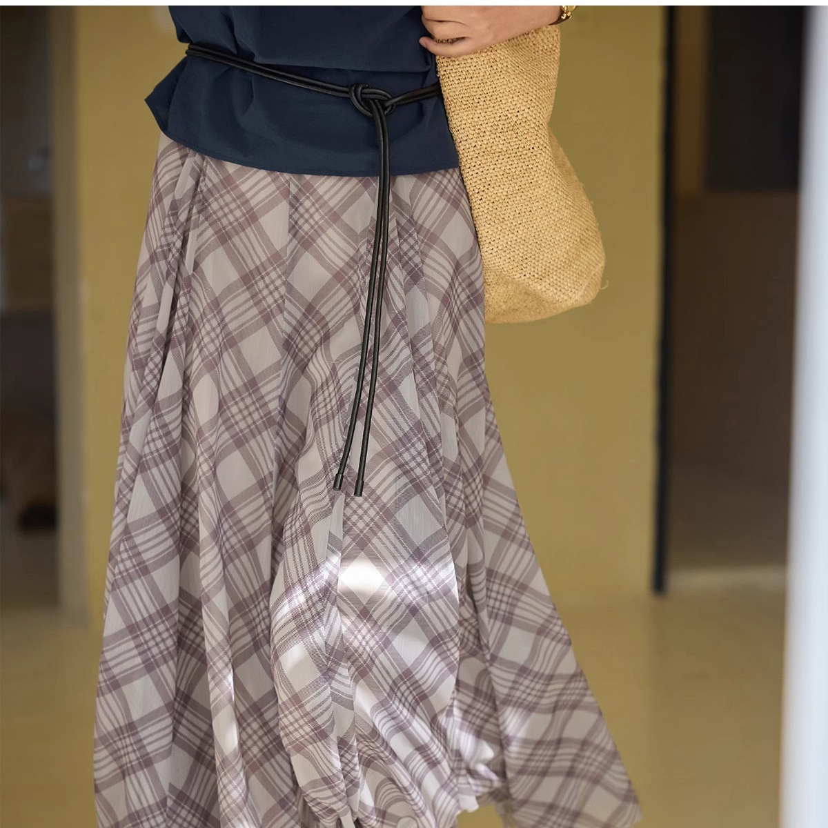 solihgter 法式格子不规则半身裙女夏季25新款垂坠感飘逸长裙