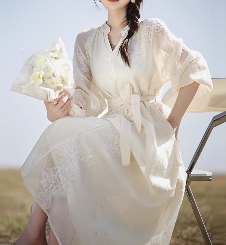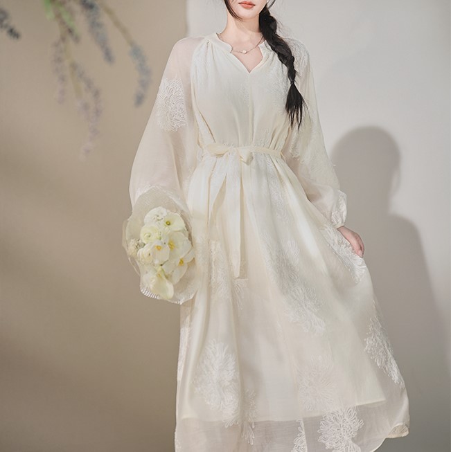 连衣裙爆款 精致棉柔绣花 慵懶法式气质夏季女 女神范连衣裙