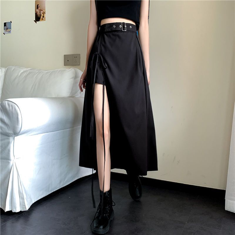 夏季新款中长款开衩裙子女大码胖mm不规则气质高腰A字半身裙