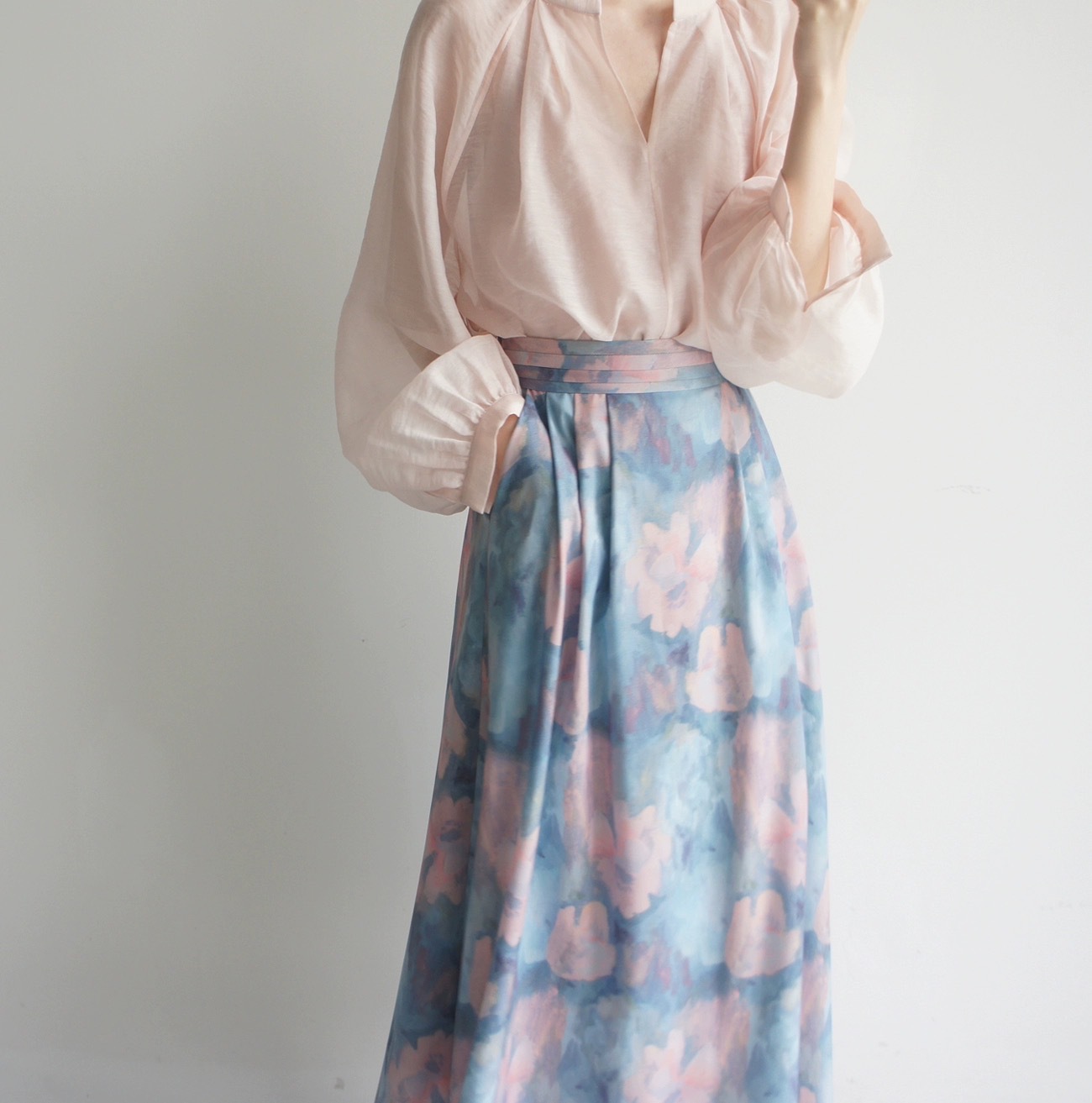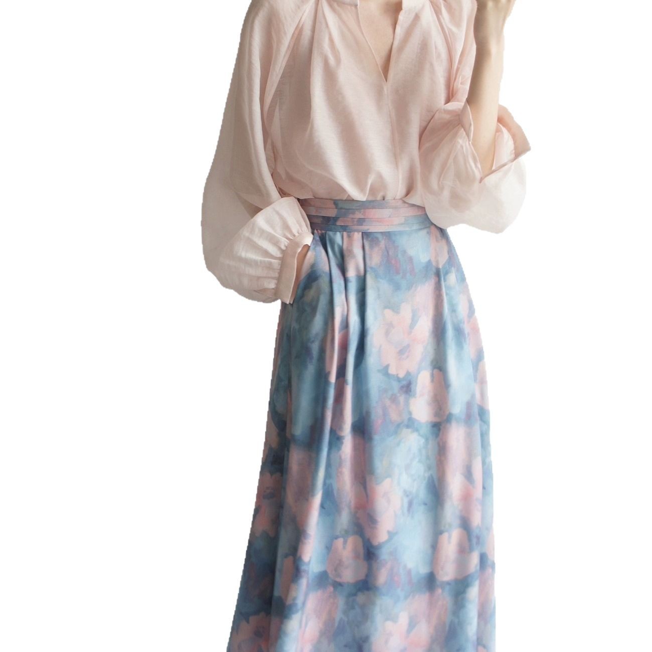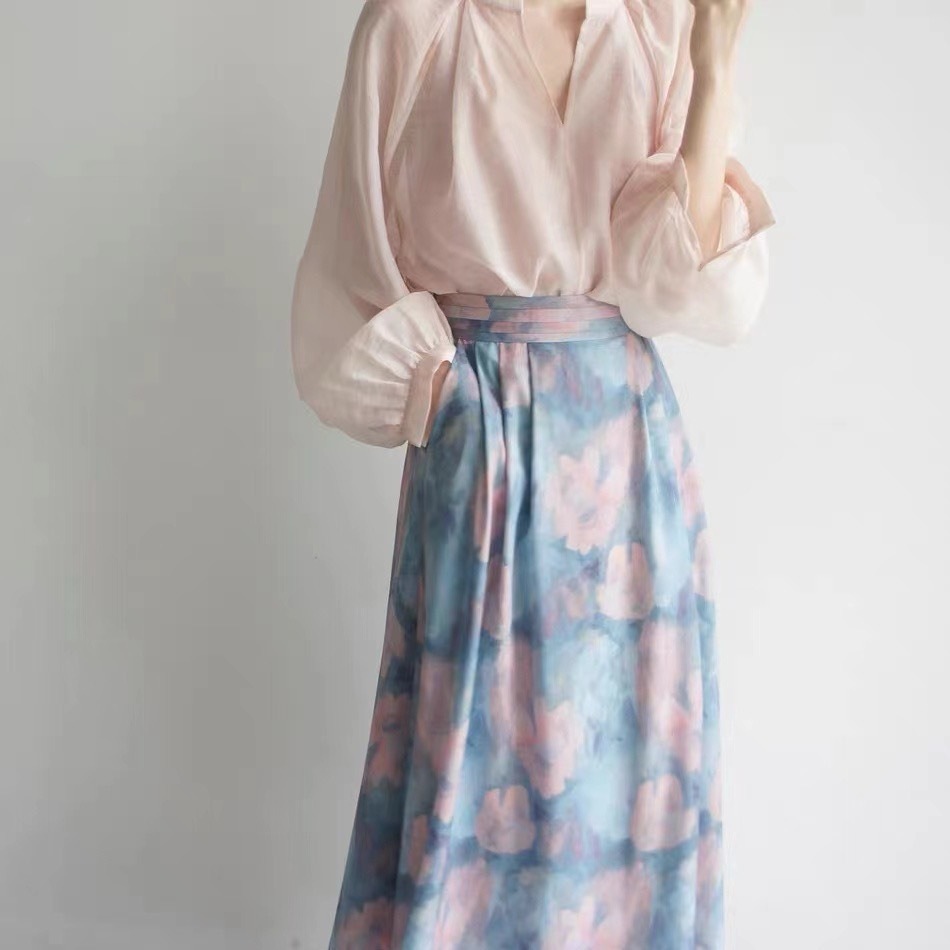 复古法式油画风抽象花口袋过膝A型半身裙 女下装2025温柔裙子