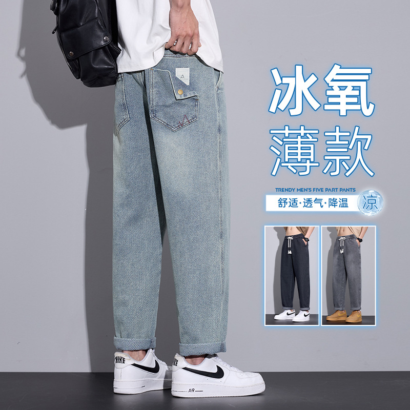 冰丝牛仔裤男士春季新款潮牌宽松直筒九分休闲长裤子2025春季新款