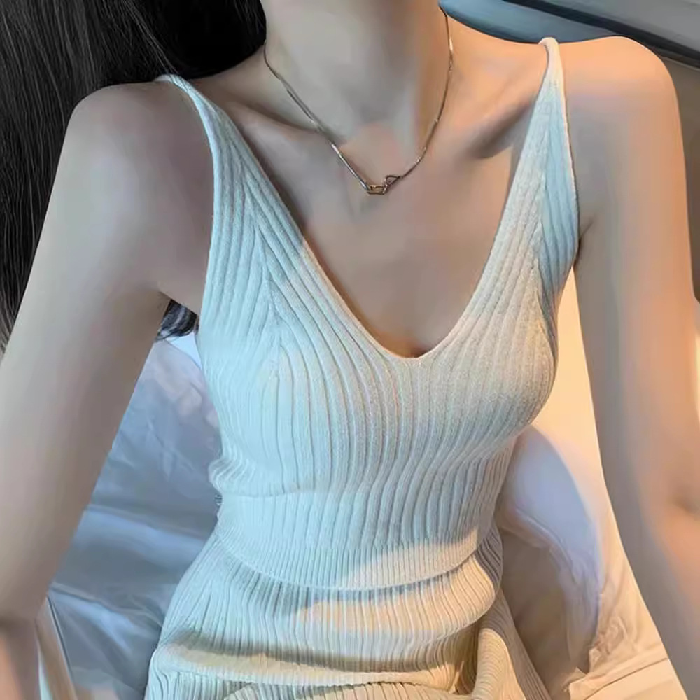 一百分内搭 百搭高腰针织背心女内搭打底v领短款吊带上衣